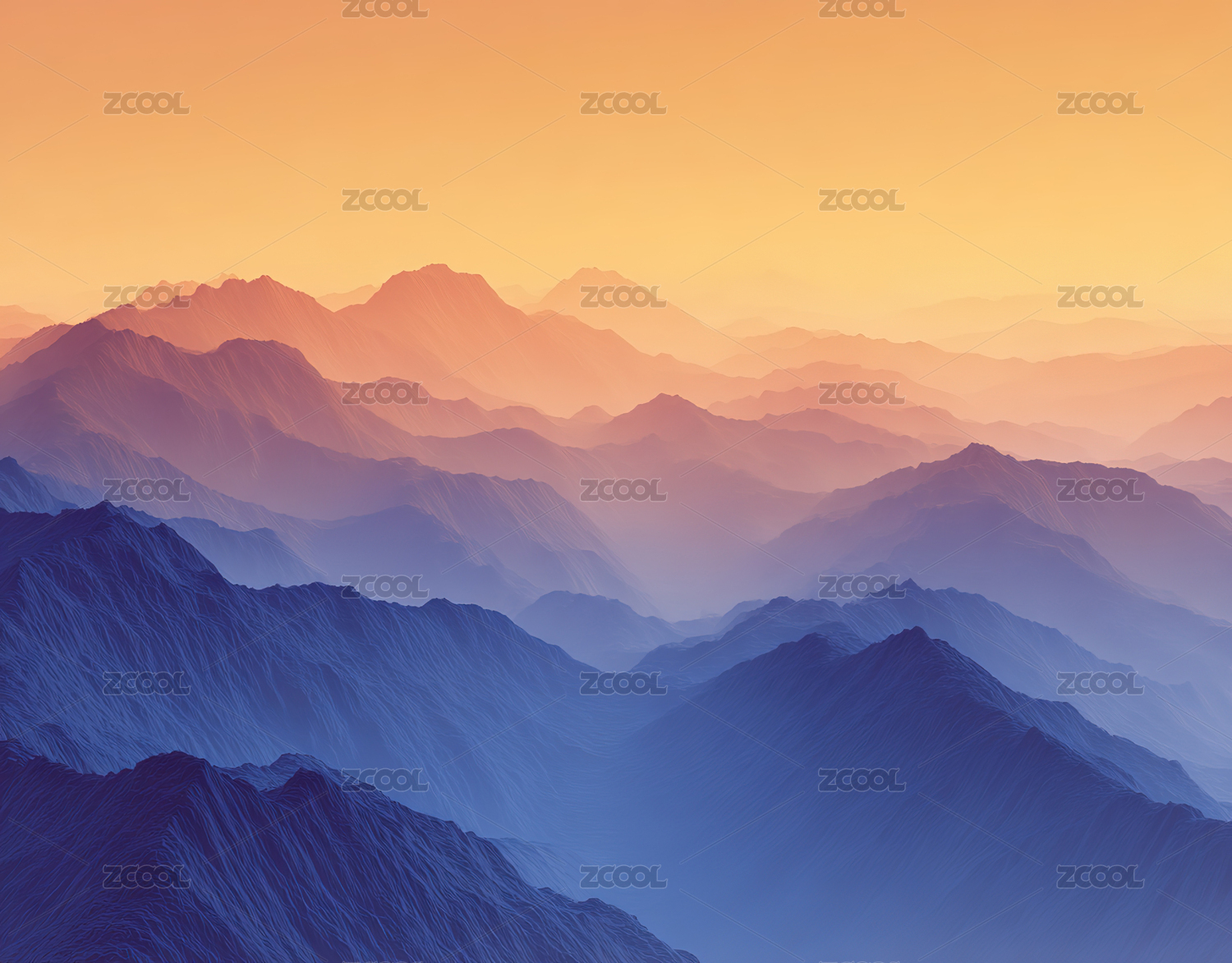 渐变色连绵山脉风光