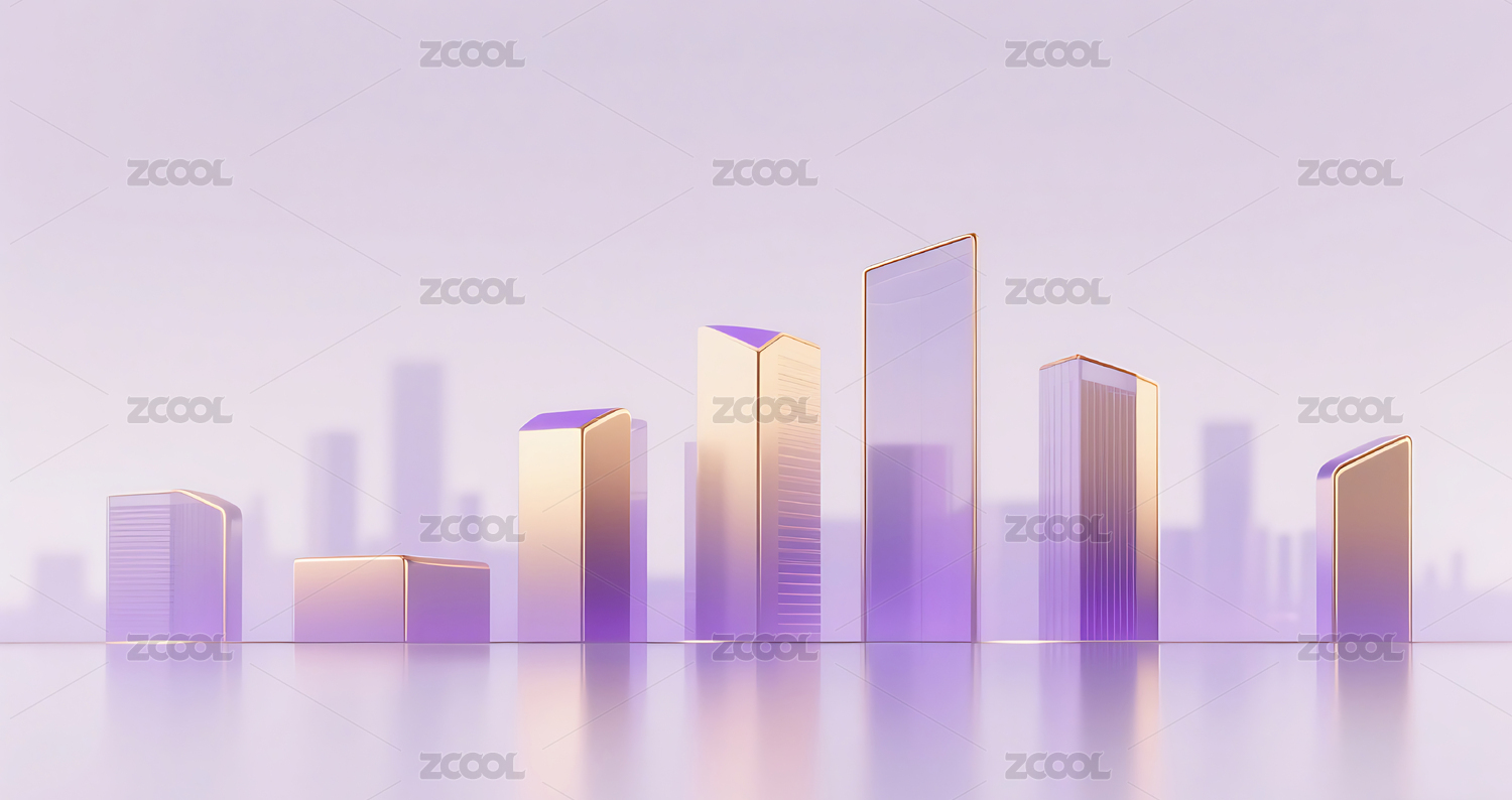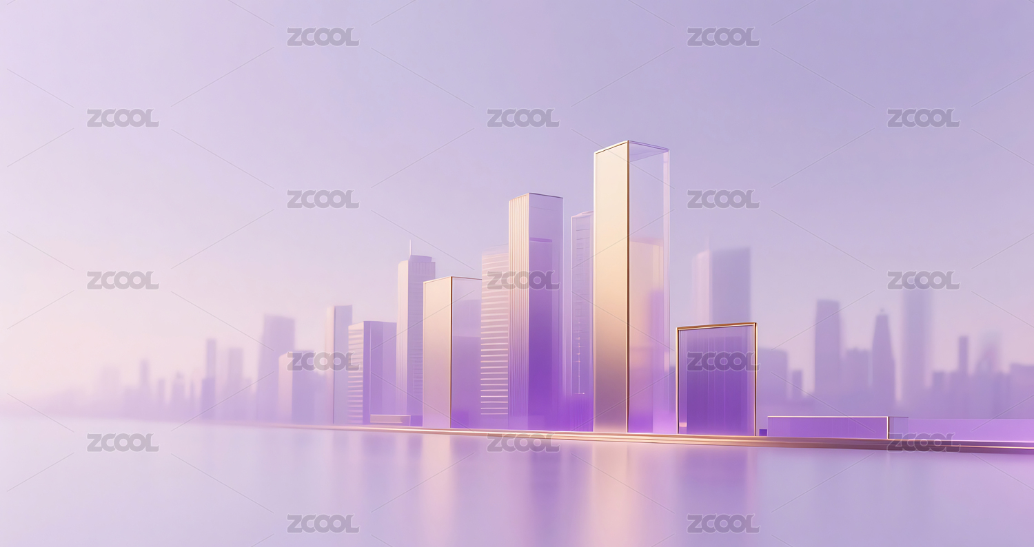 紫金色几何玻璃城市建筑背景