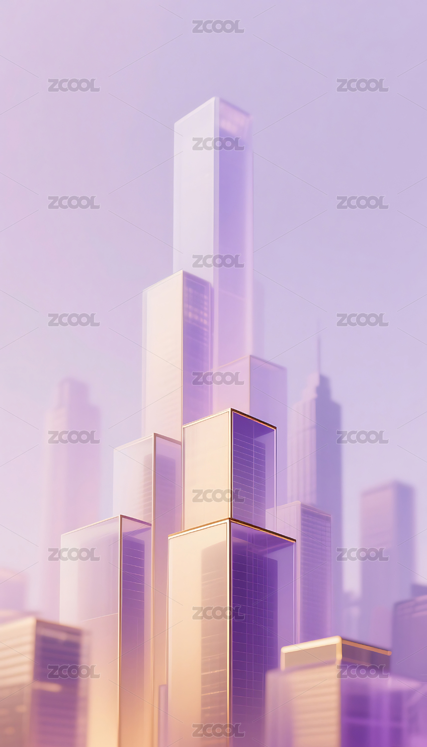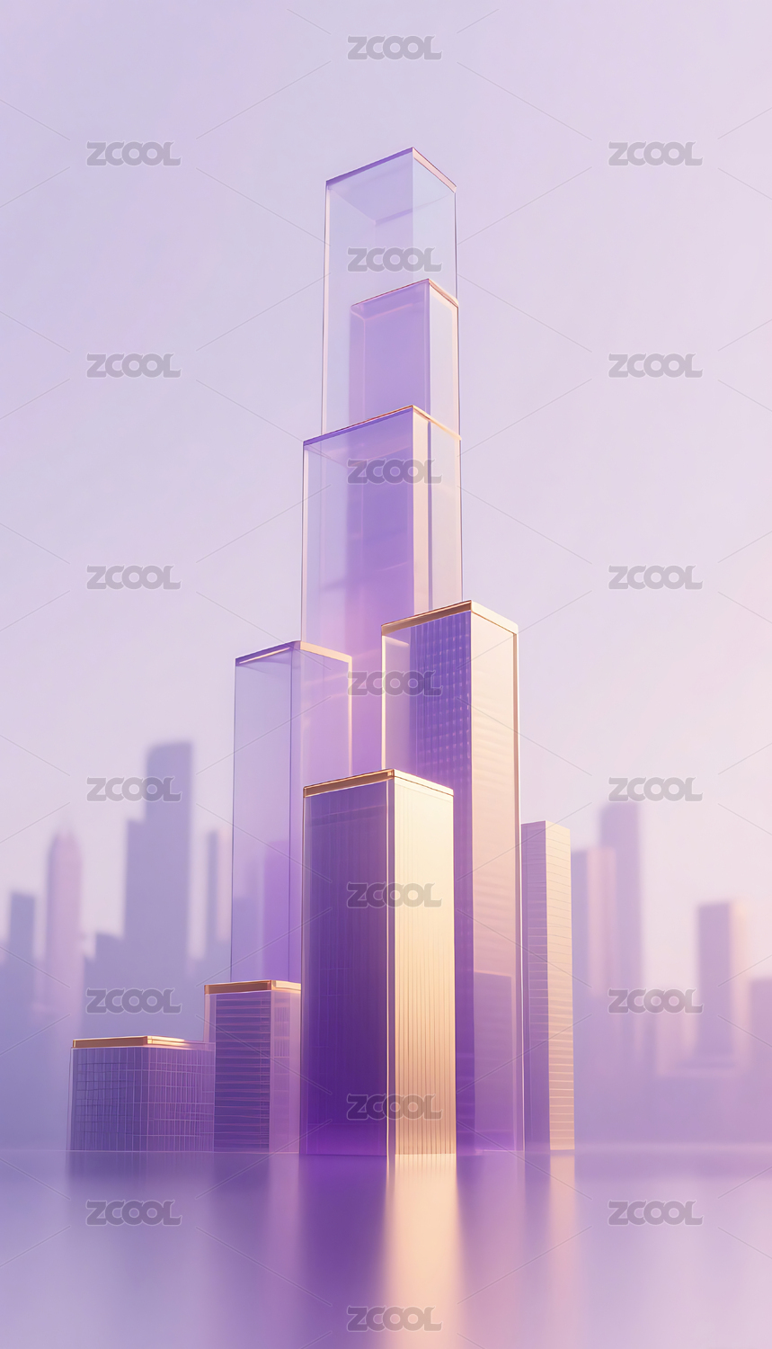 紫金色几何玻璃城市建筑背景