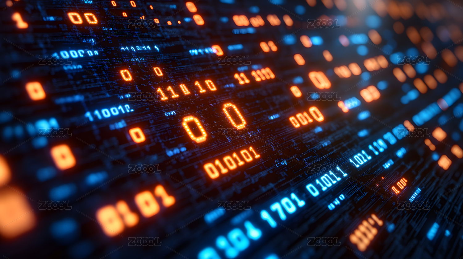 蓝色橙色二进制代码流光溢彩