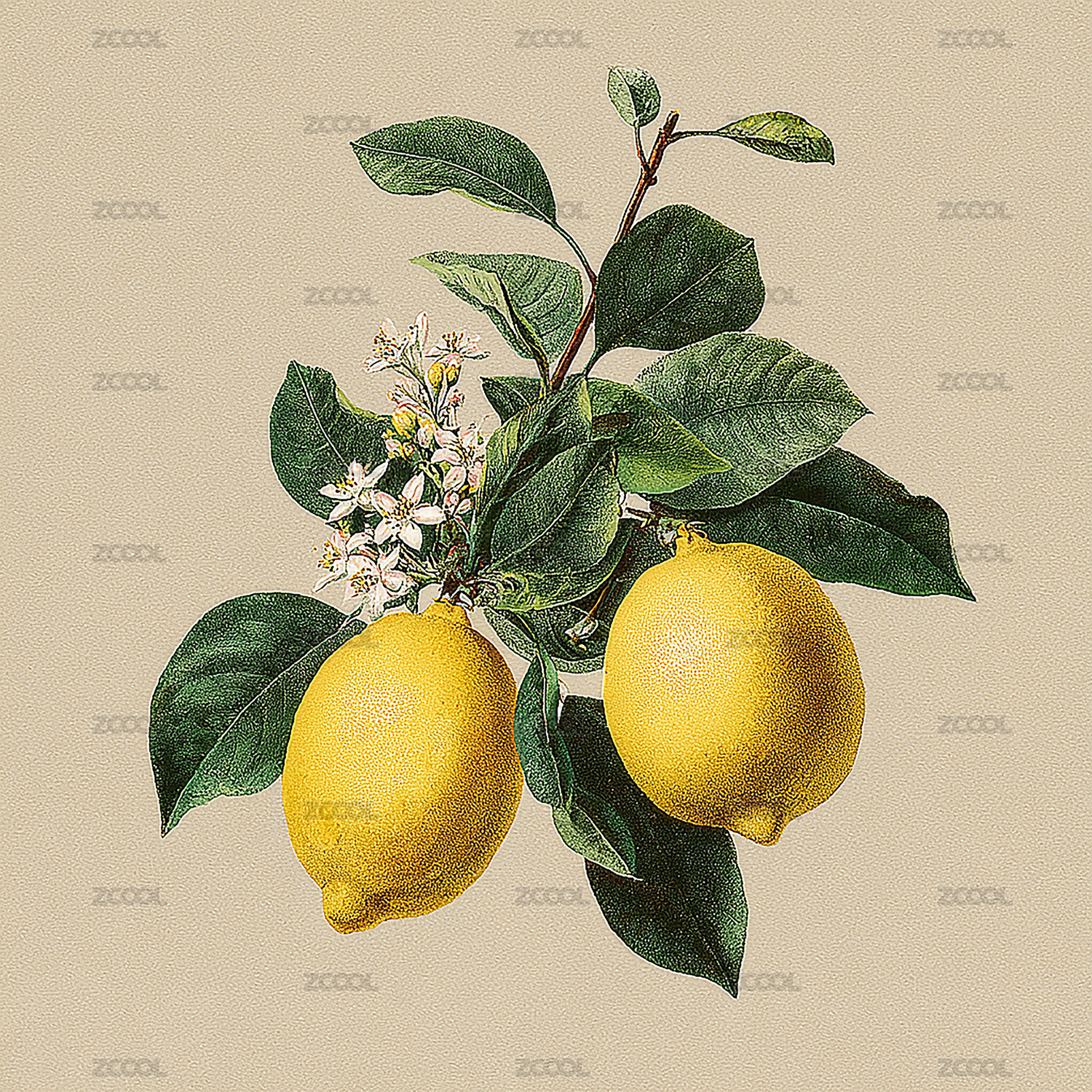 水彩,黄色,柠檬,背景,水果,绿叶,复古,纹理