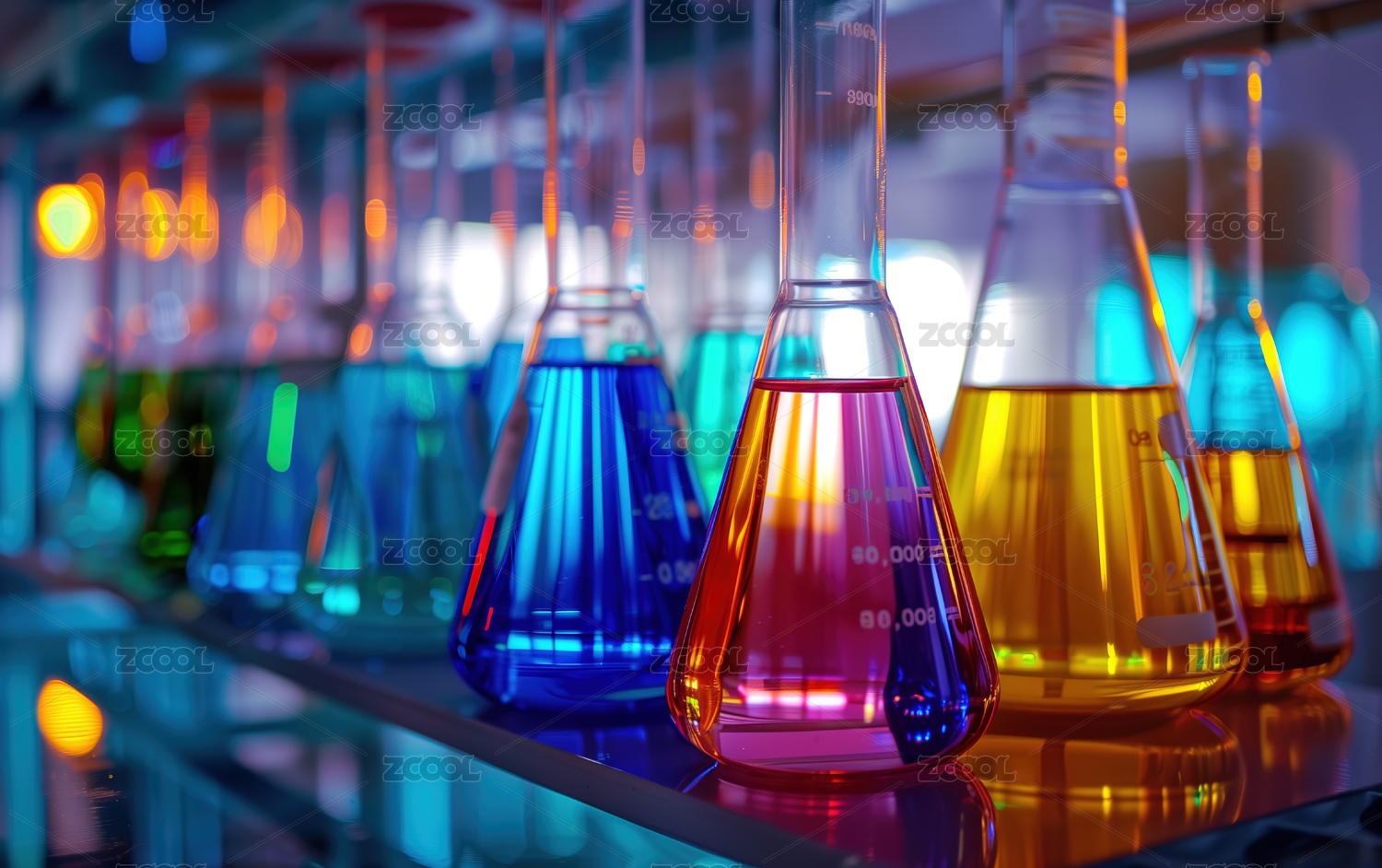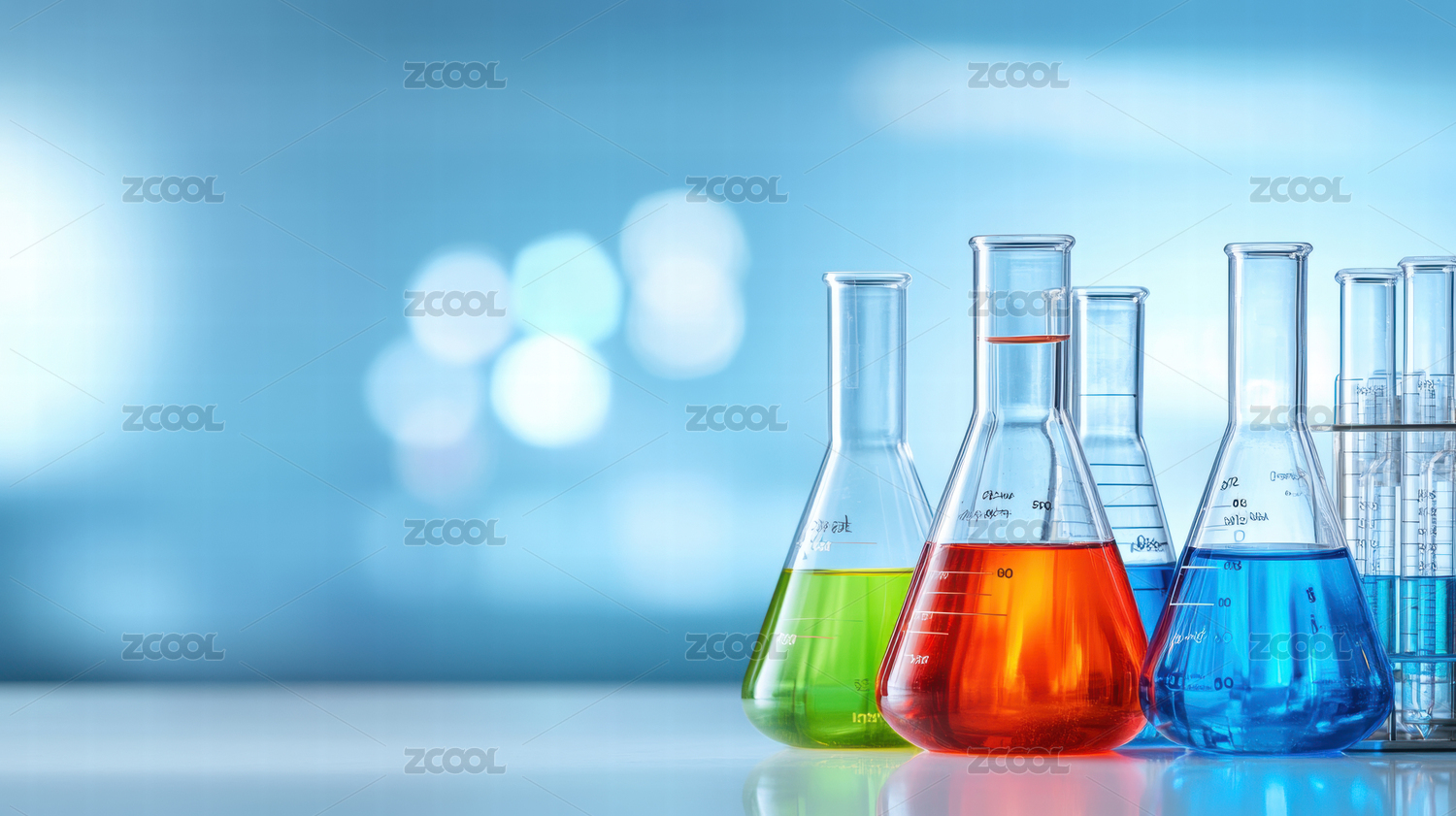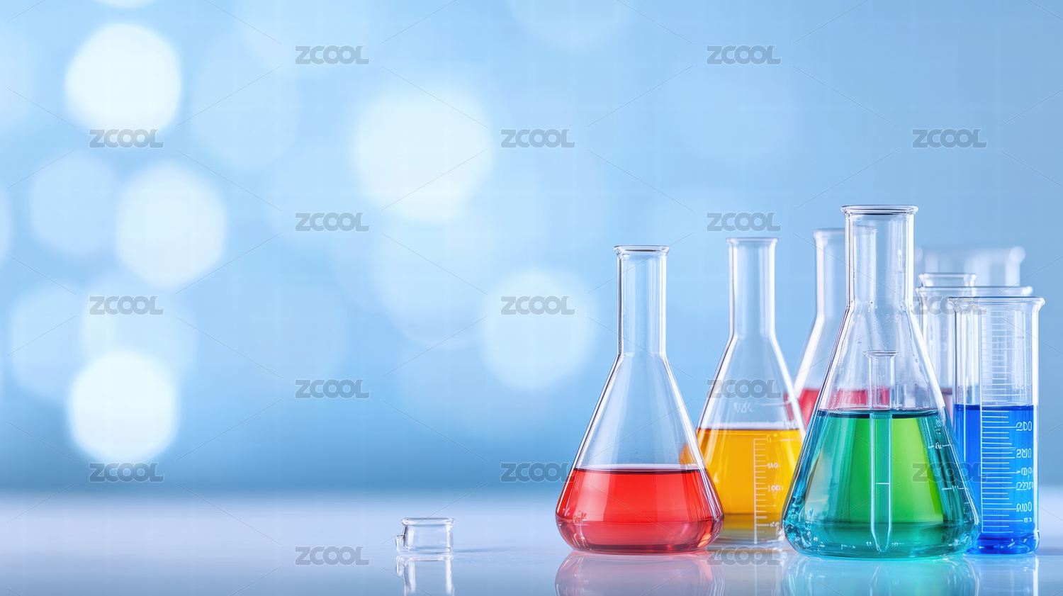 蓝色场景设计风格化学实验器皿的背景 蓝