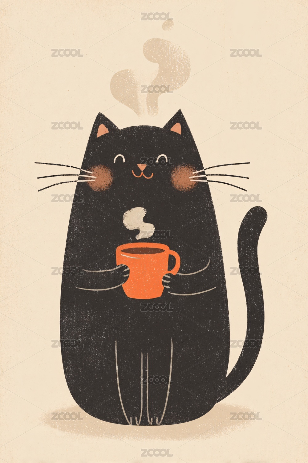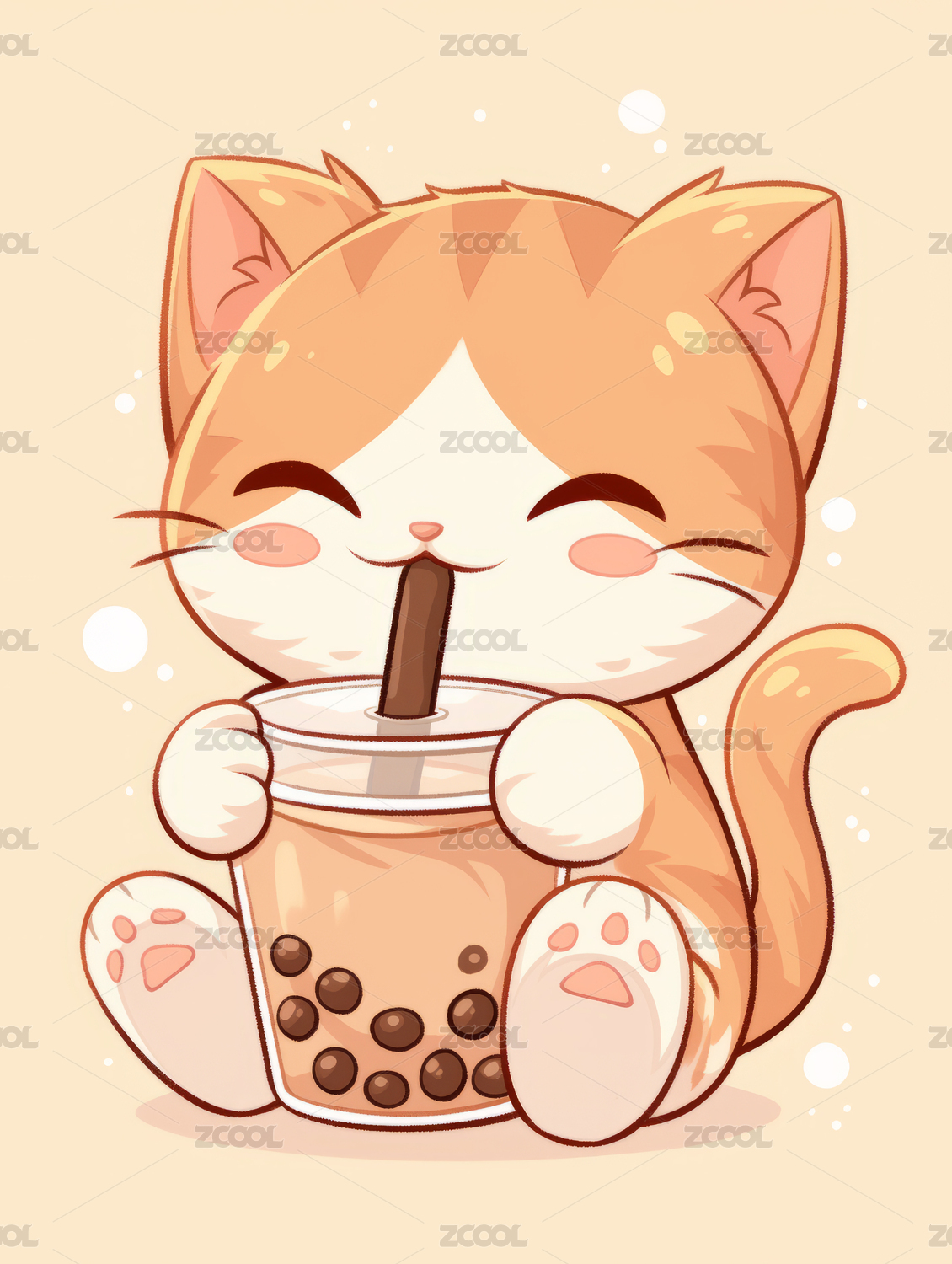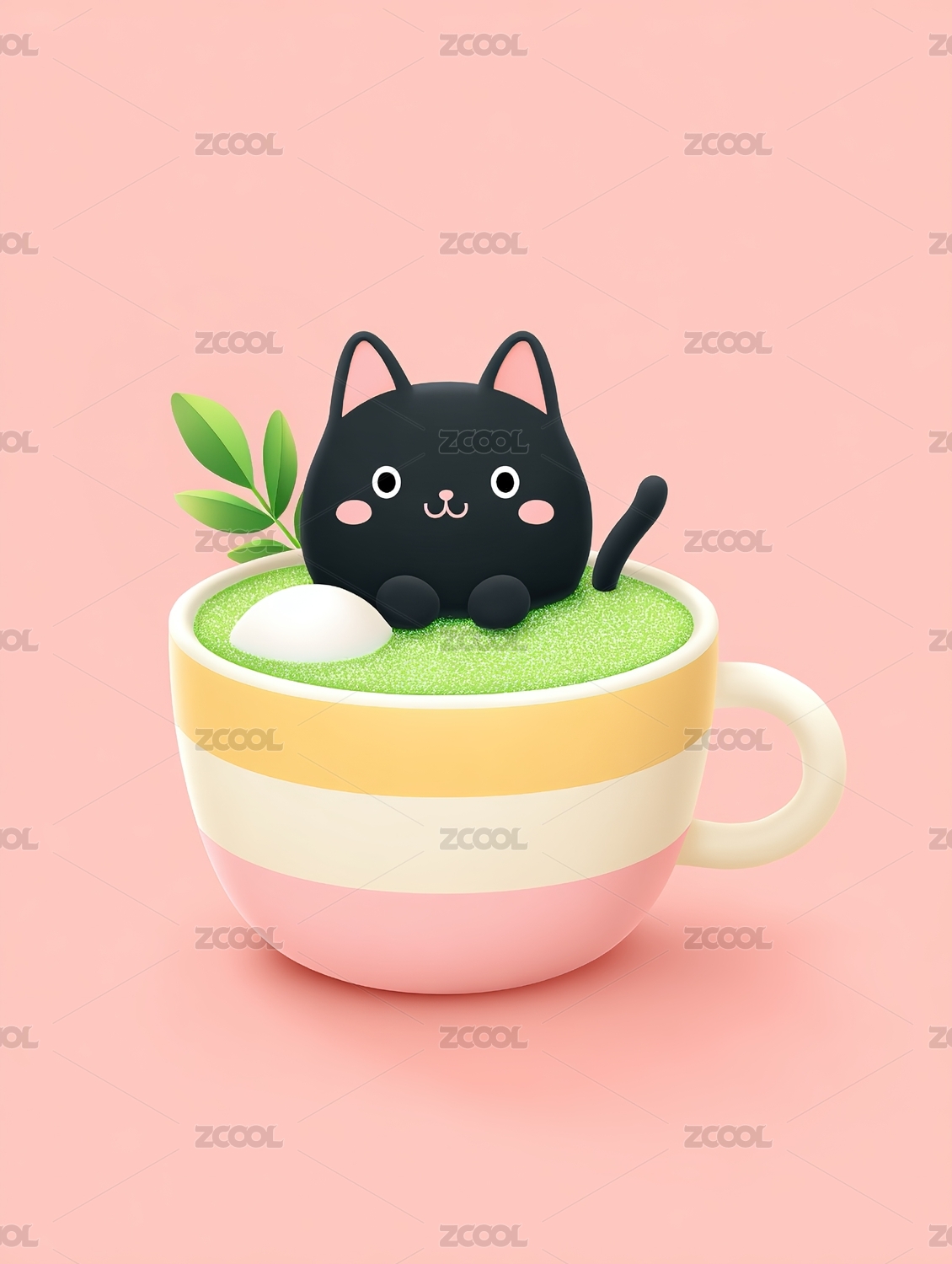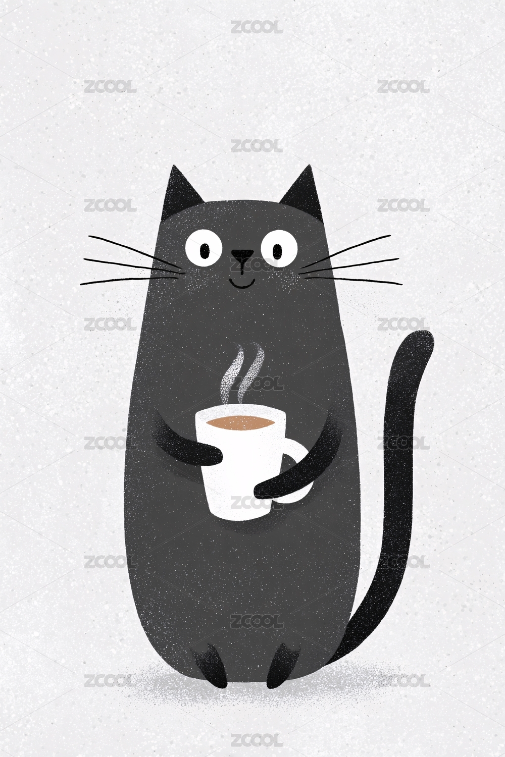 奶茶,可爱,黑猫,猫,饮料,动物,壁纸,卡通