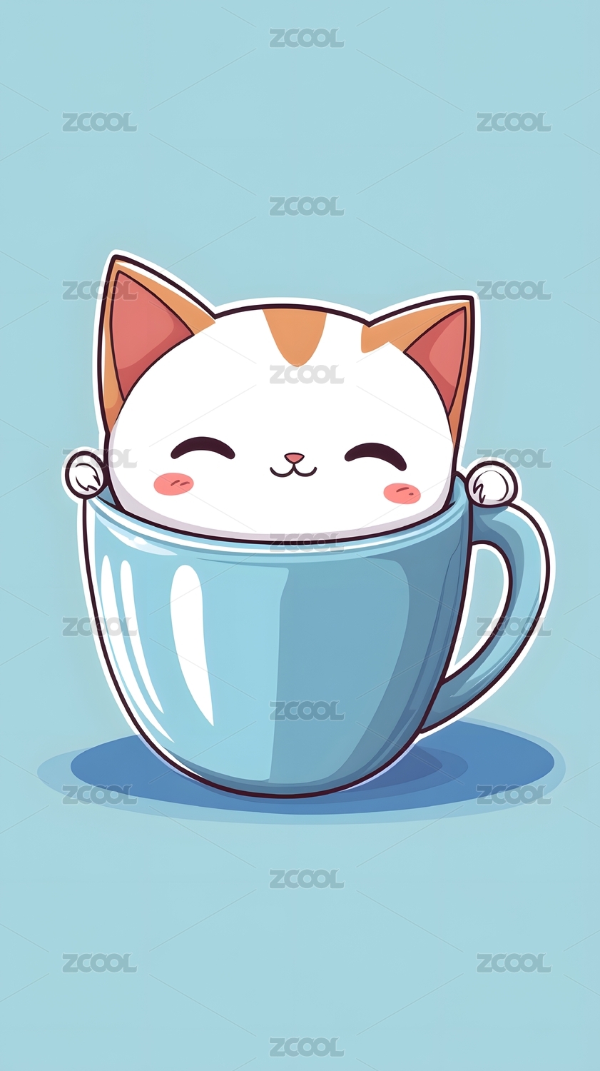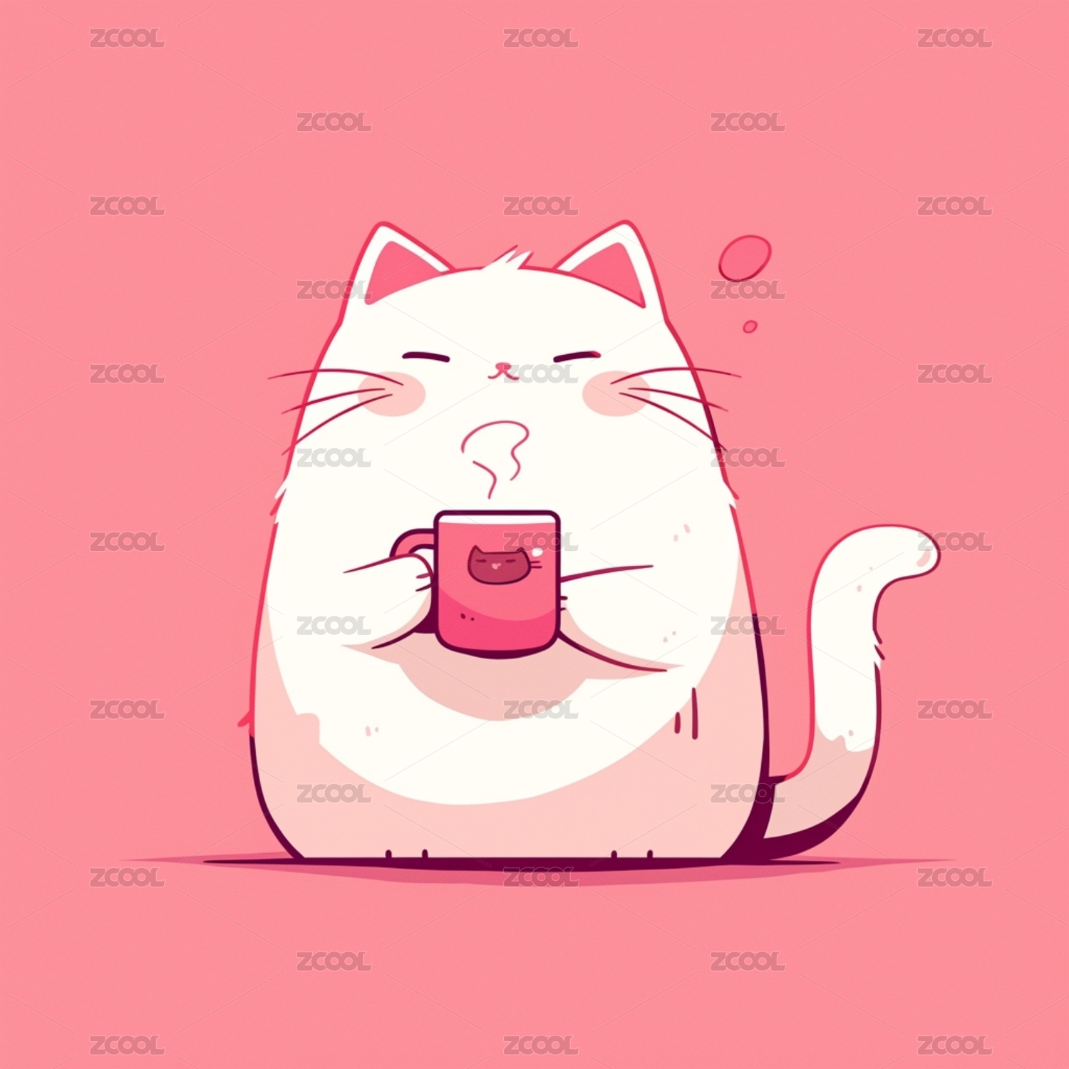 卡通手绘线条感极简风小猫微笑表情壁纸插画