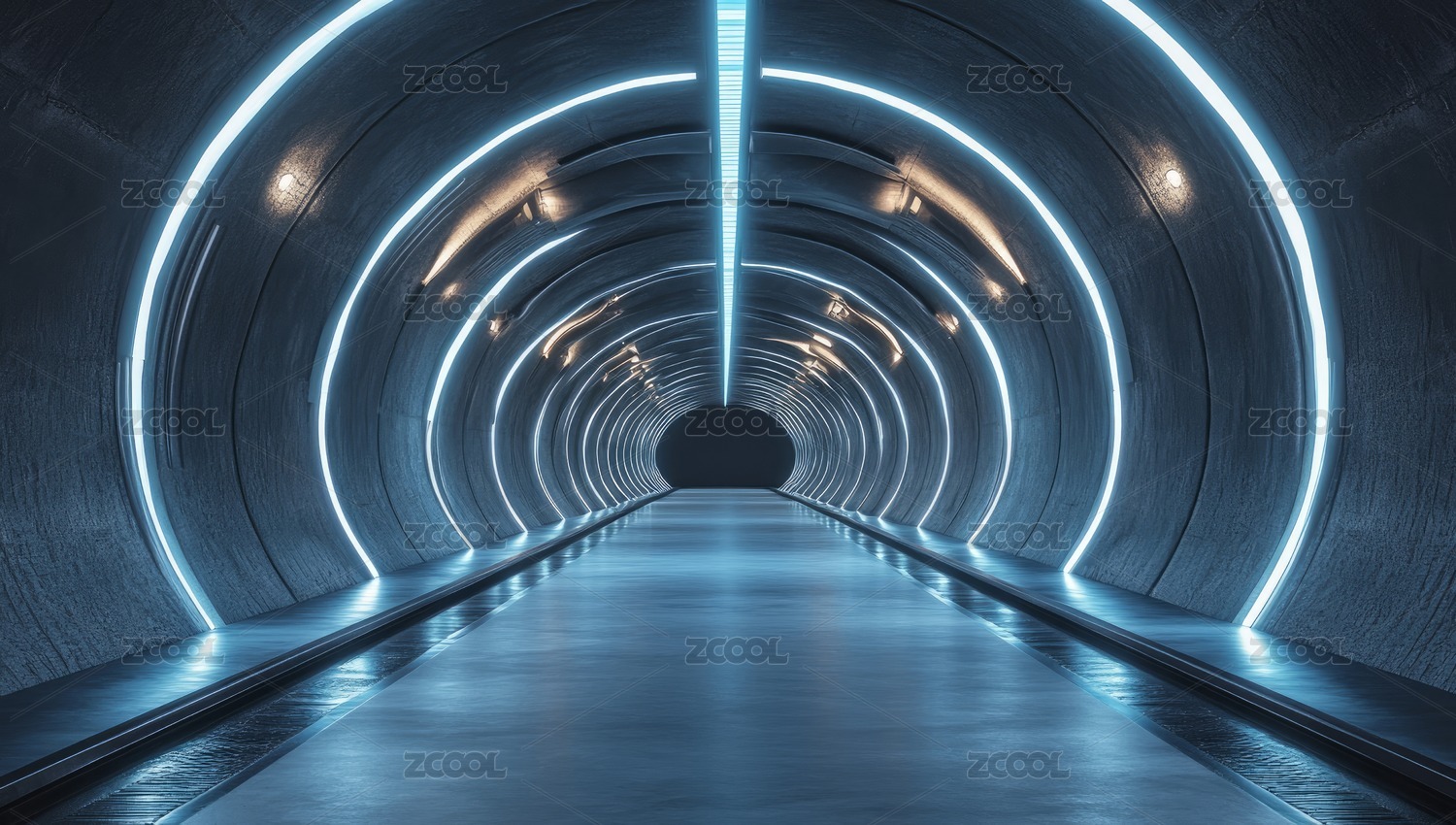 未来感,科幻,隧道,金属,明亮灯光,反射地面,现代设计,内部结构,科技感,照明