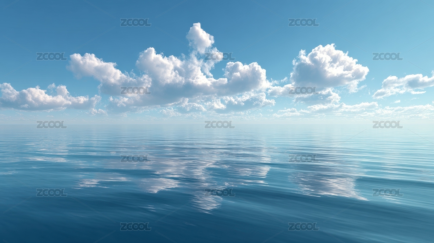 蓝天白云下的平静海面