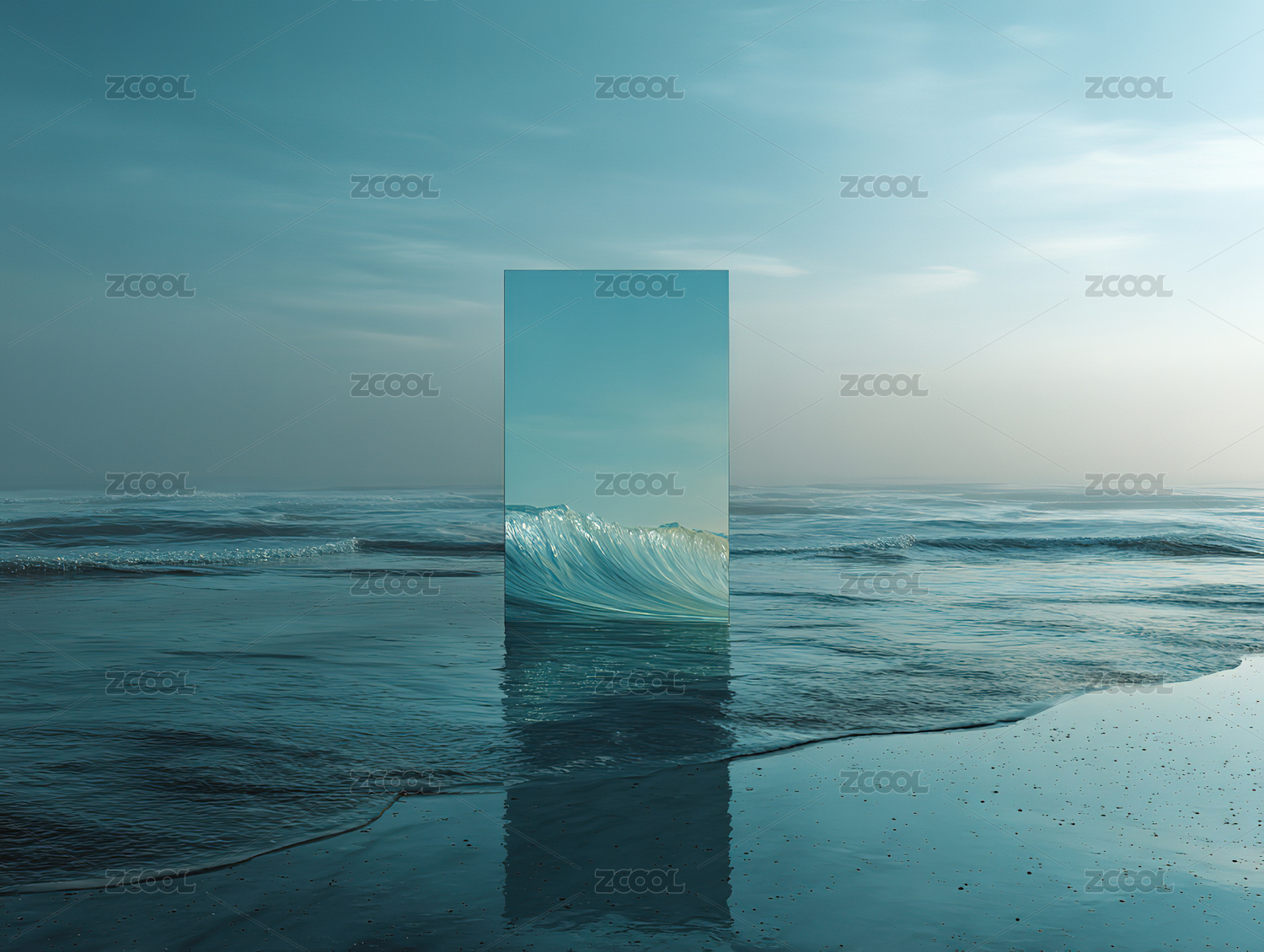 海面中的矩形波浪镜像