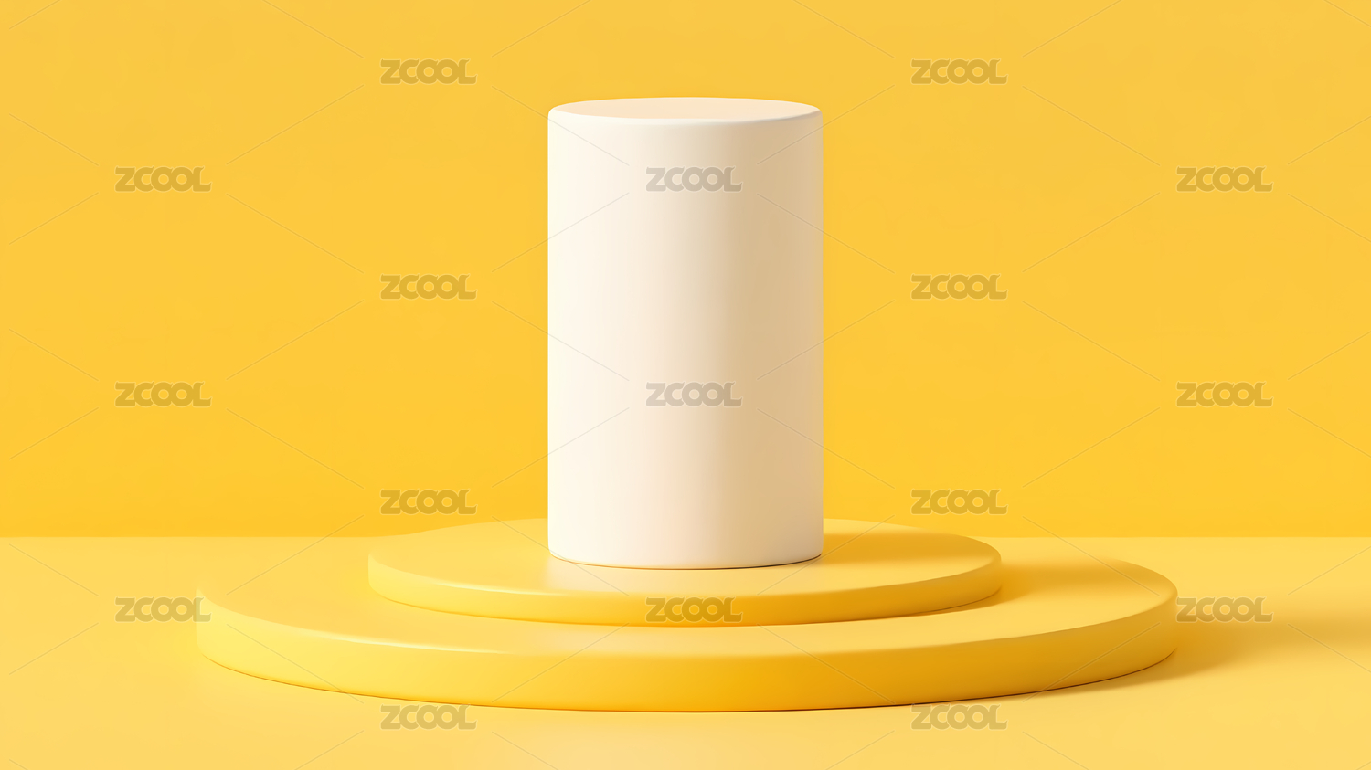 黄色背景上的白色圆柱体展示台