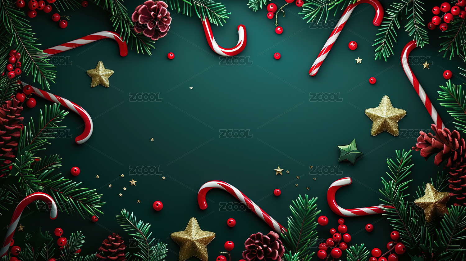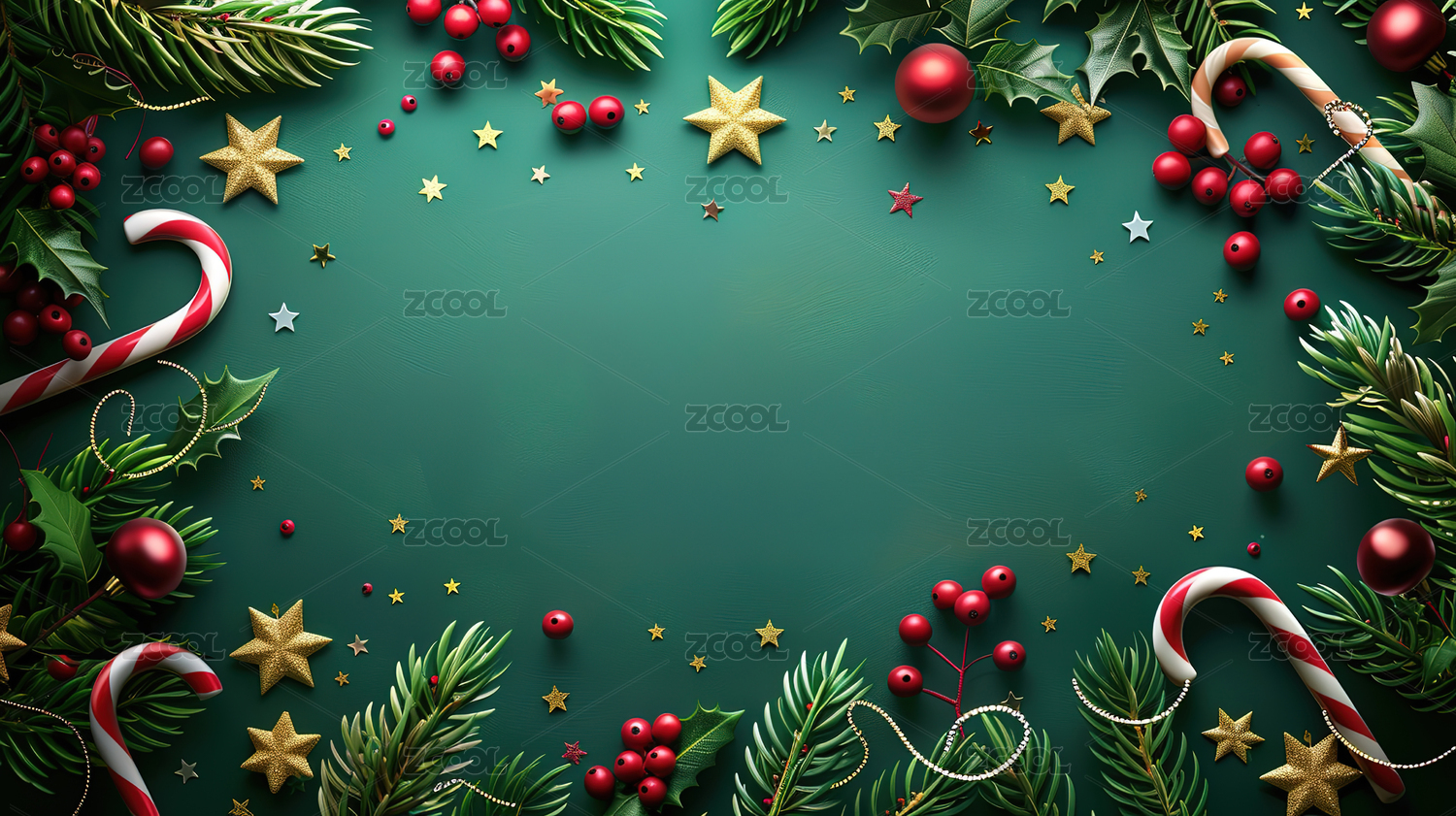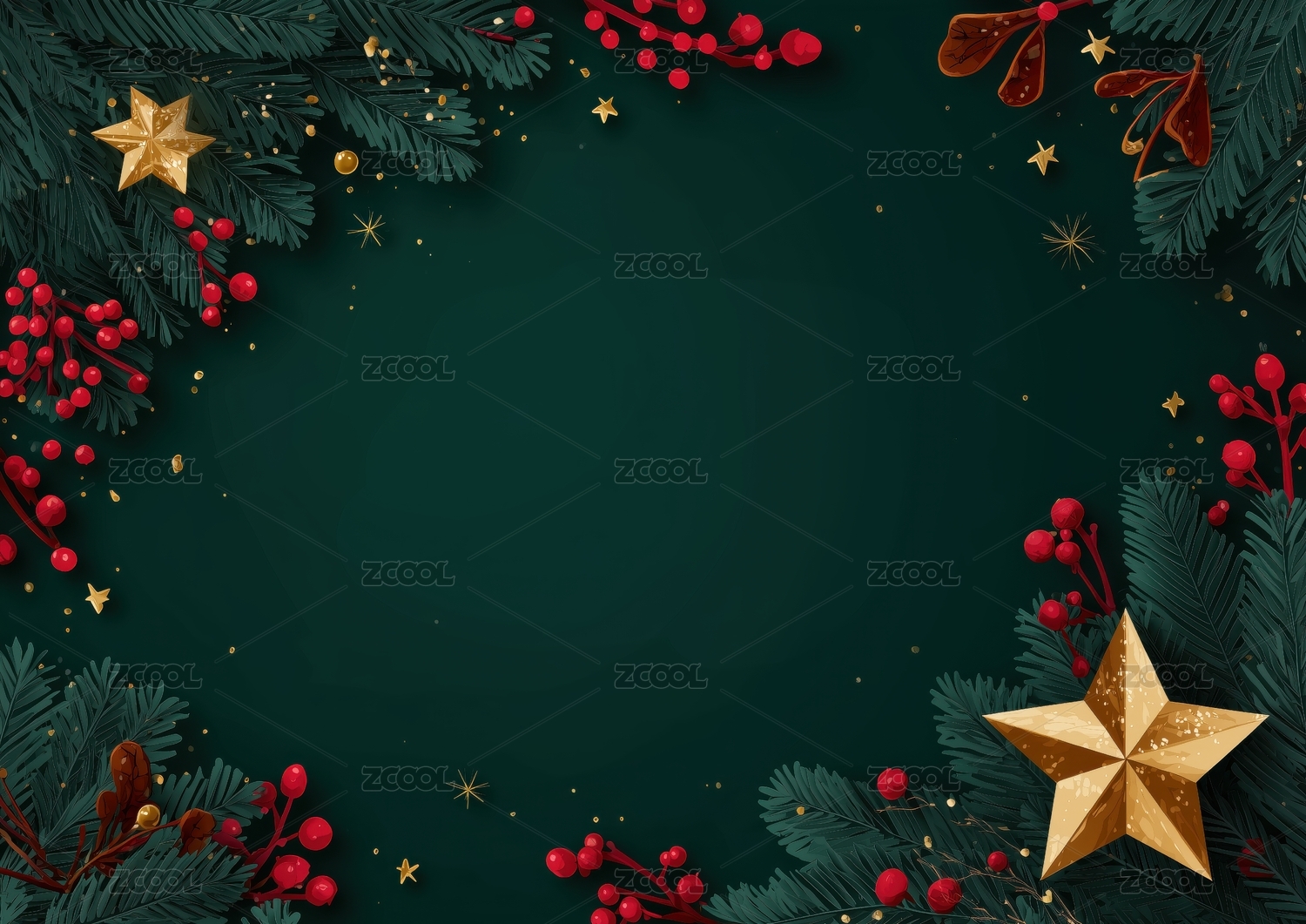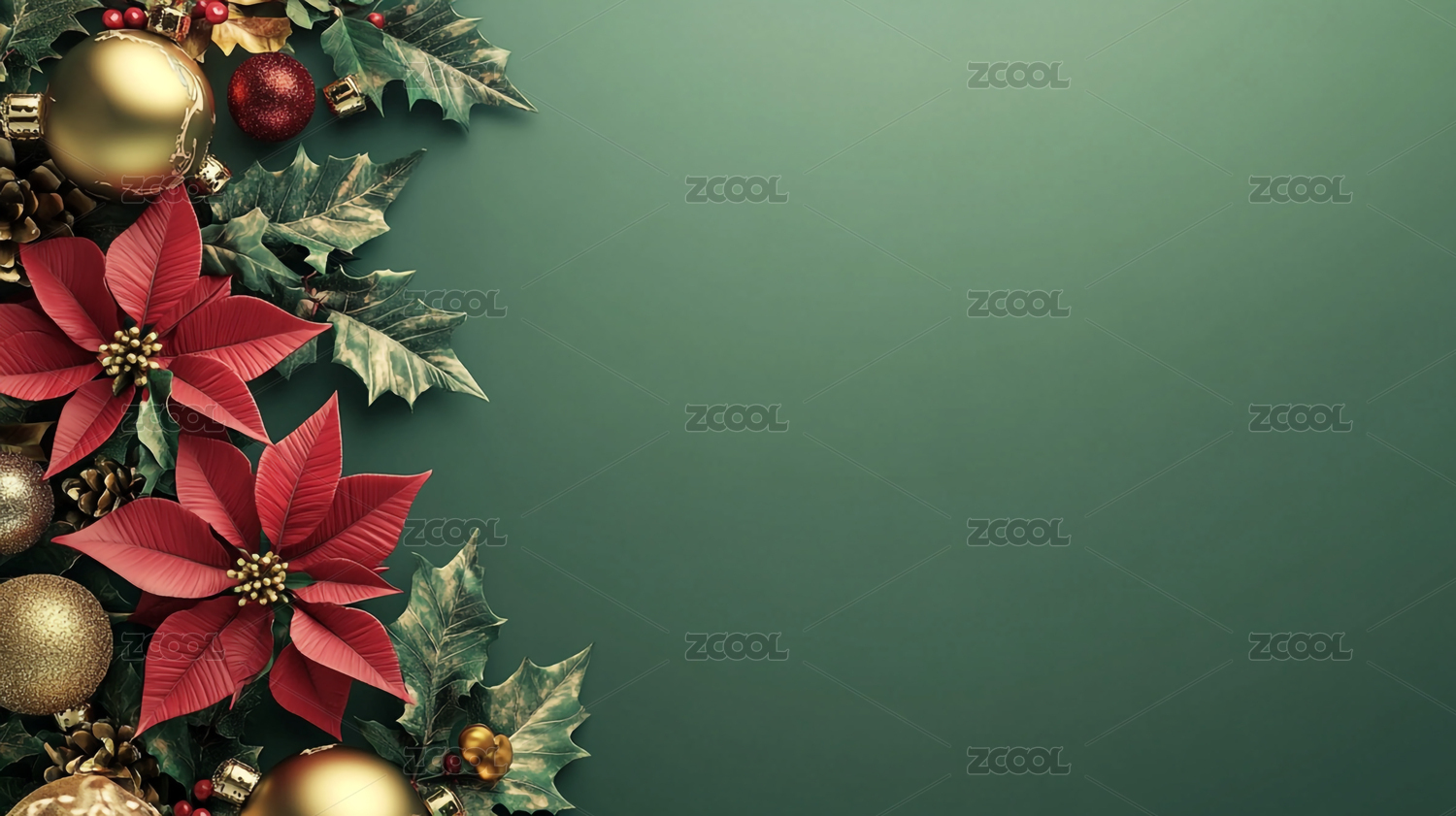 红色,金色,装饰,星星,圣诞花,装饰球,丝带,深绿,节日,气氛