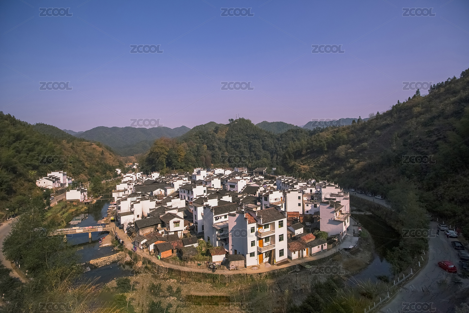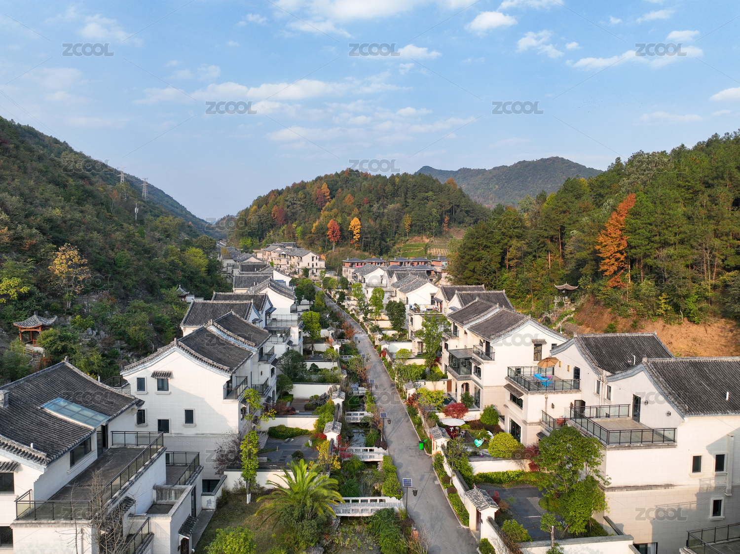 浙江磐安三亩田村新农村建筑全貌风光