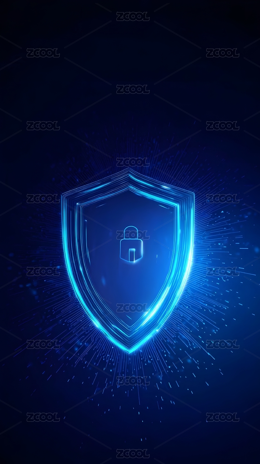 深蓝色科技悬浮半透明数据防护罩盾牌背景