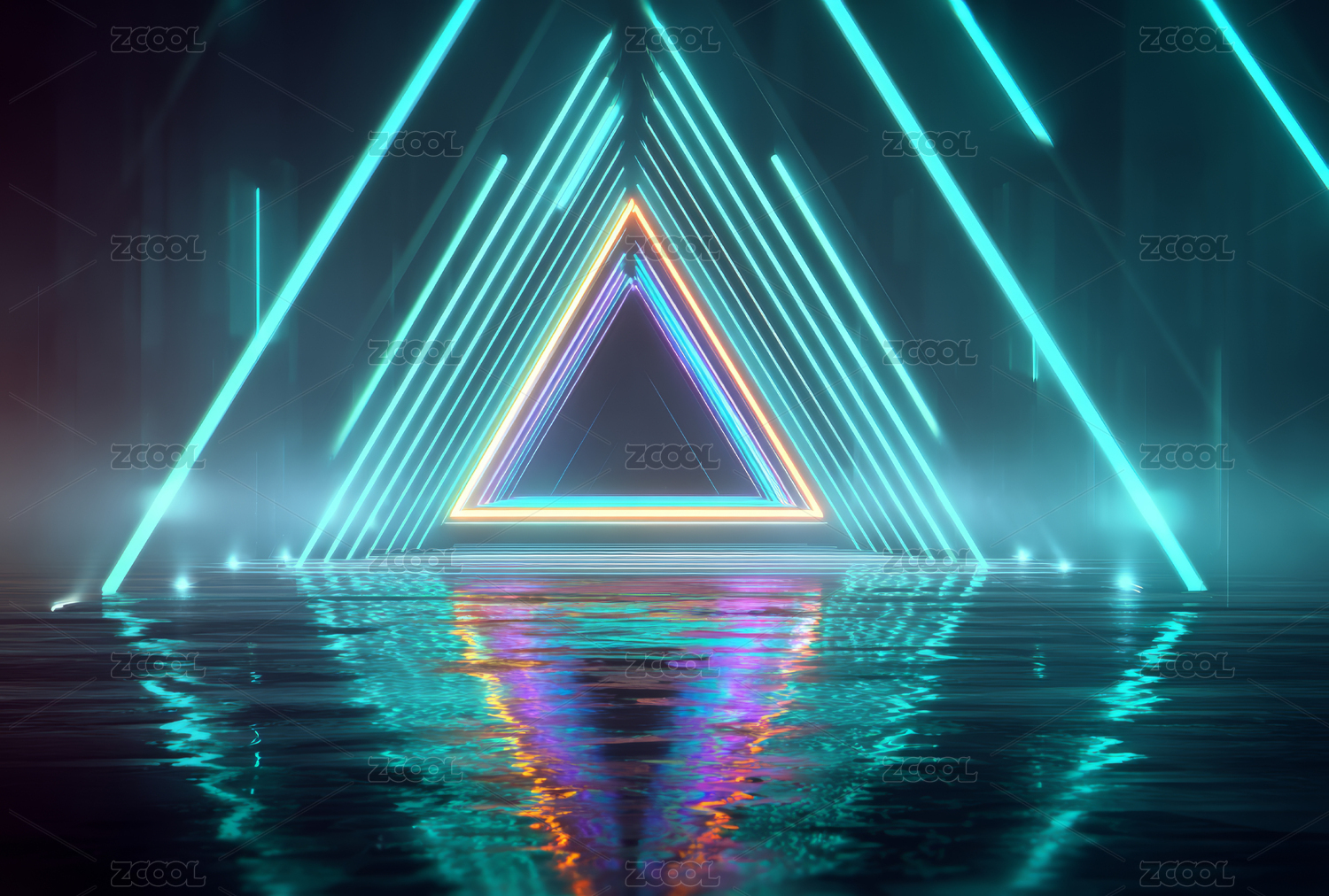 蓝色,三角形,科技,深色,未来,霓虹灯,隧道,反射,紫色,地面