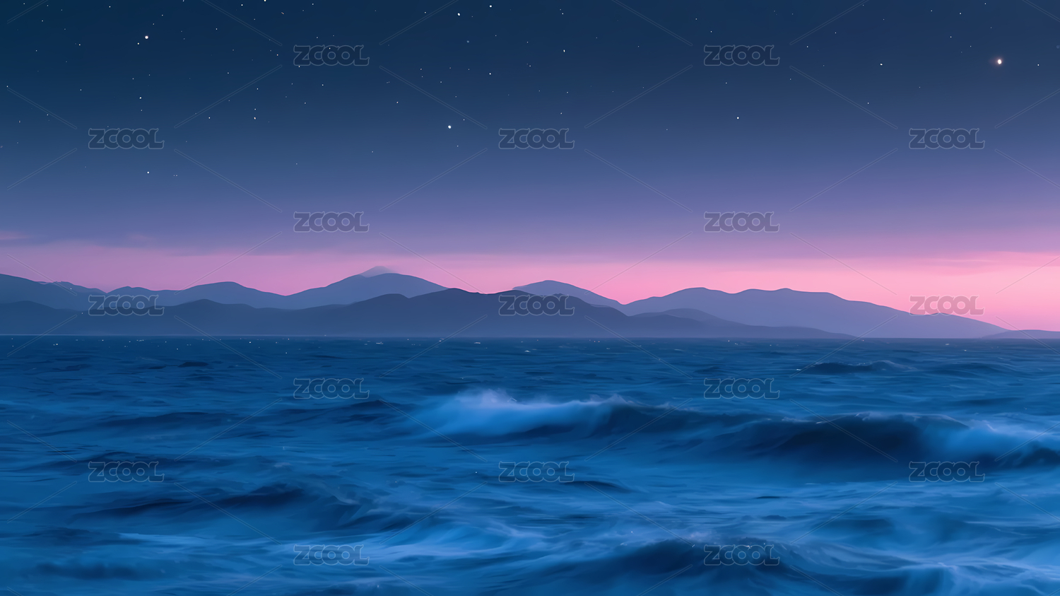 蓝色,波涛,星空,夜空,山脉,海洋,宁静,粉紫,渐变,连绵