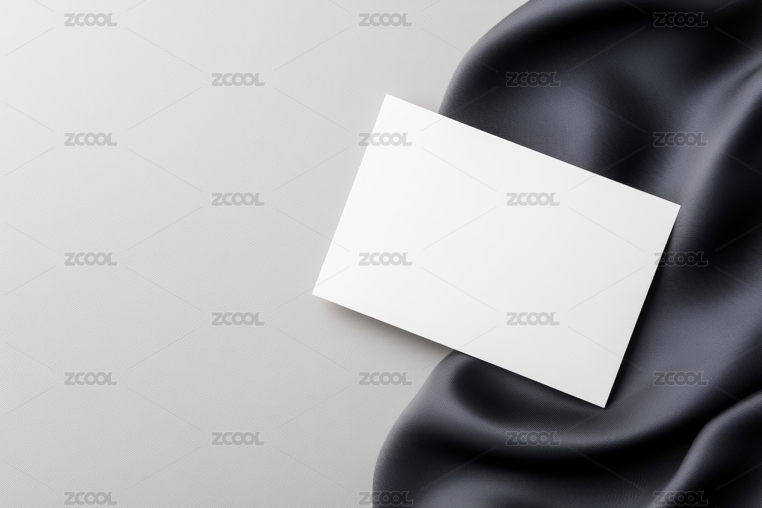 浅蓝色布料上的白色卡片静物摄影高清图片