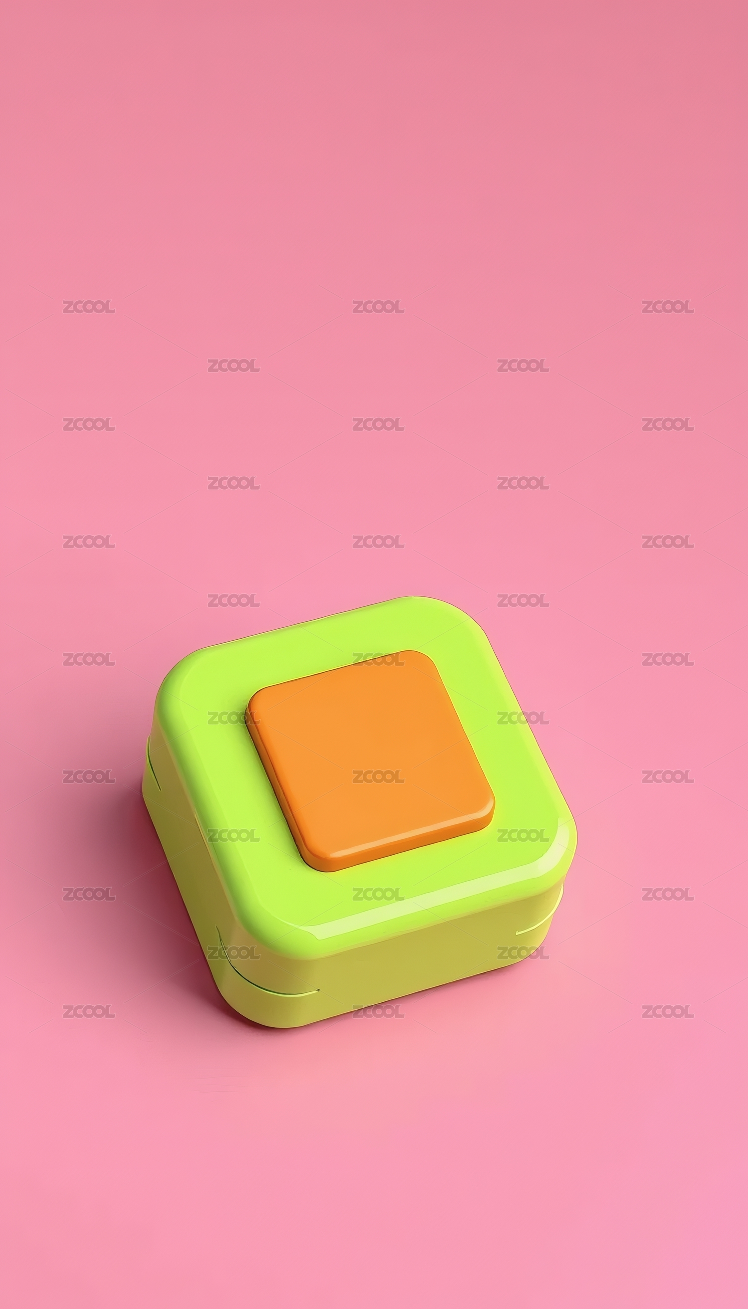 绿盒上的橙色方形物件