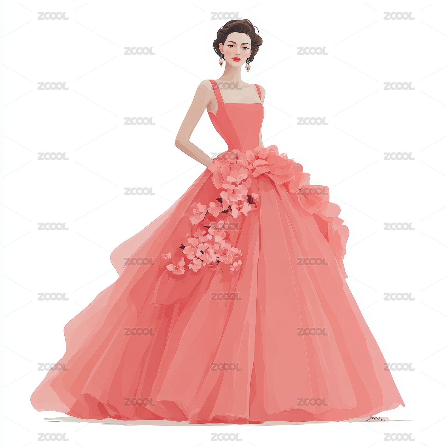 粉色,蓬裙,礼服,蝴蝶结,晚宴,婚礼,优雅,长裙,纱质,正式