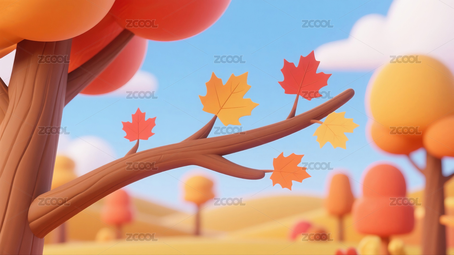 三维秋天的枫叶
