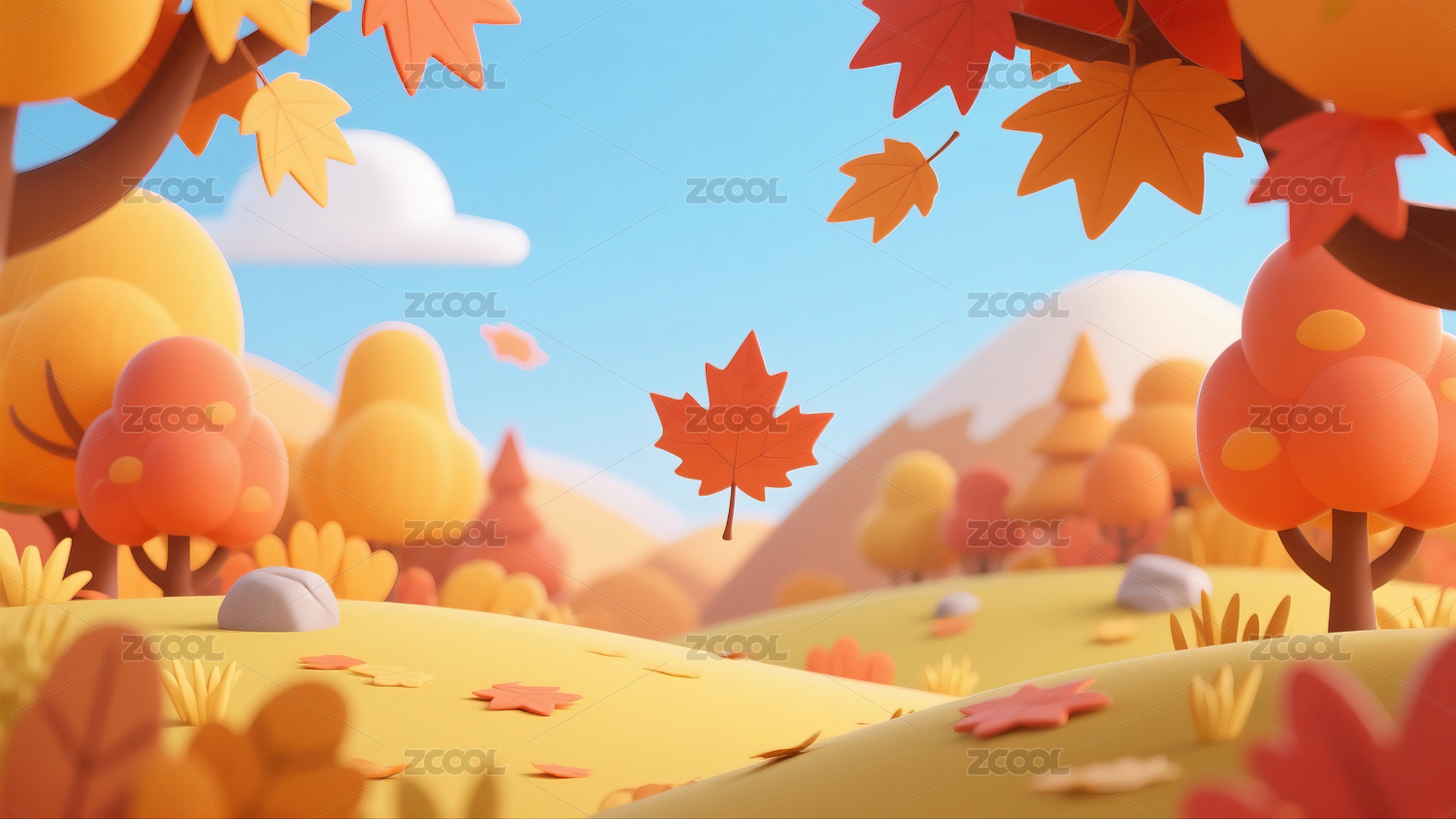 三维,3D,秋天,枫叶,立秋,树林,风景,背景