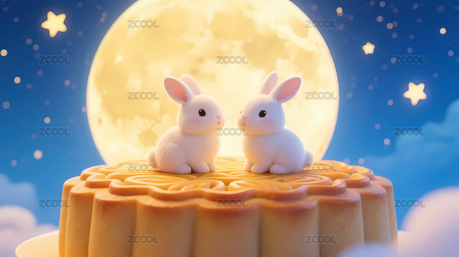 3D,三维,中秋节,月饼,满月,玉兔,兔子