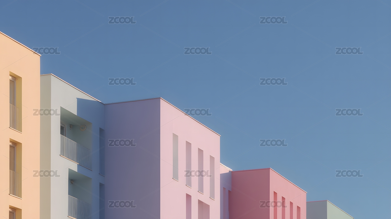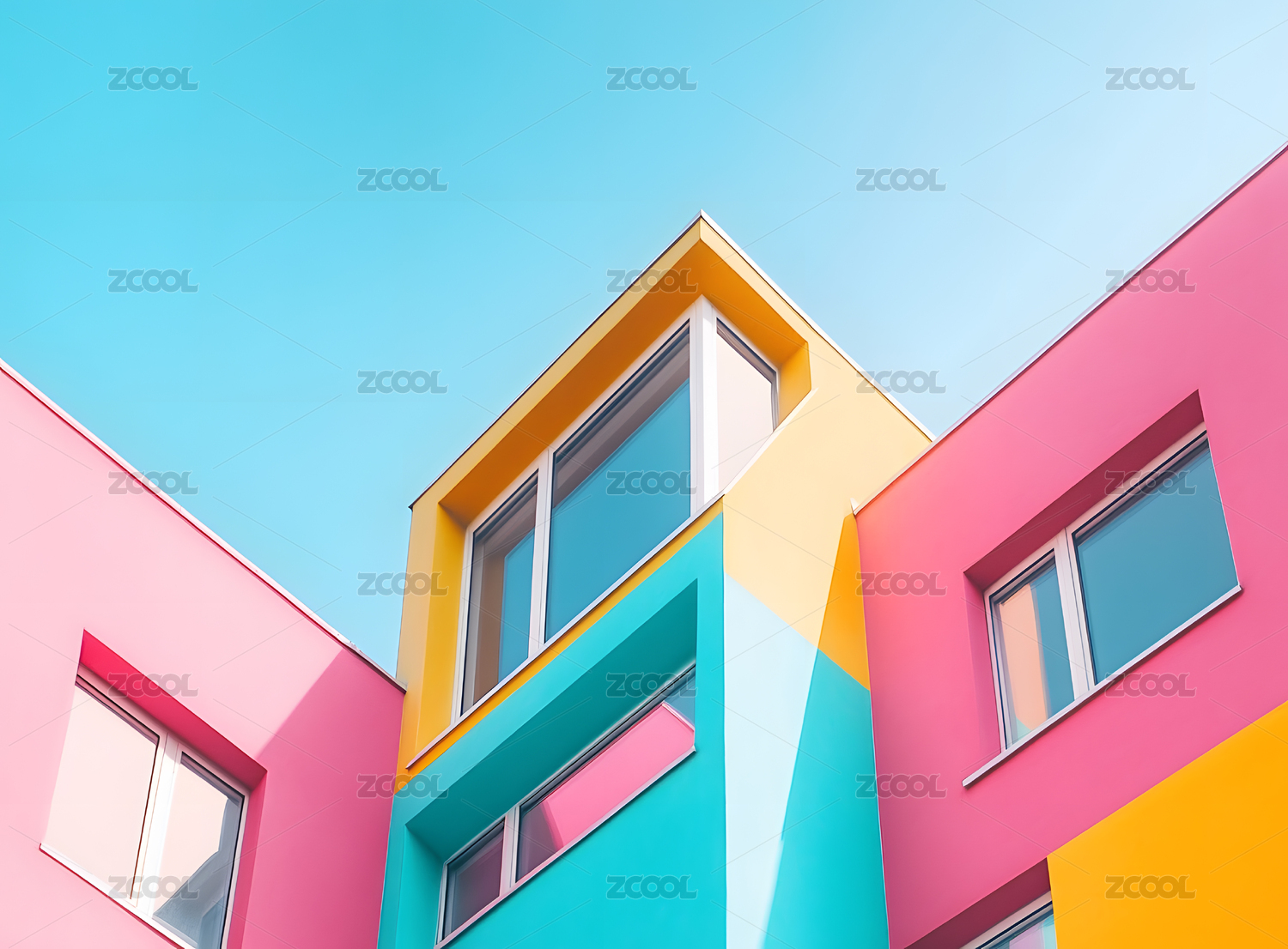 建筑, 粉色, 窗户, 蓝色, 天空, 树木, 秋天, 阳光, 色彩, 现代