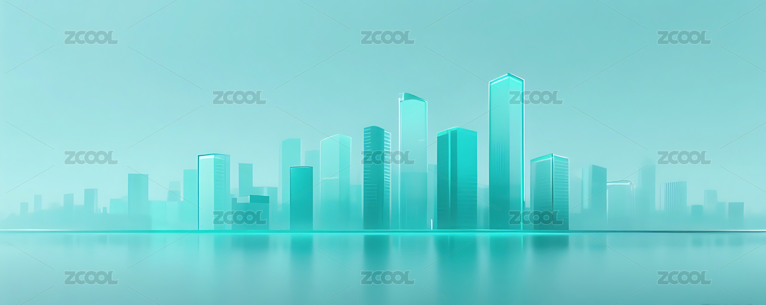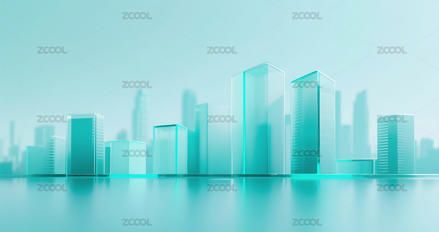 蓝绿色几何玻璃城市建筑背景