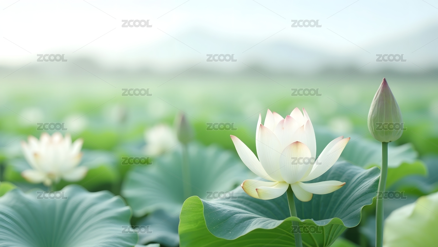 莲花,花朵,荷叶,盛开,美景,夕阳,湖面,景色,柔光,朦胧