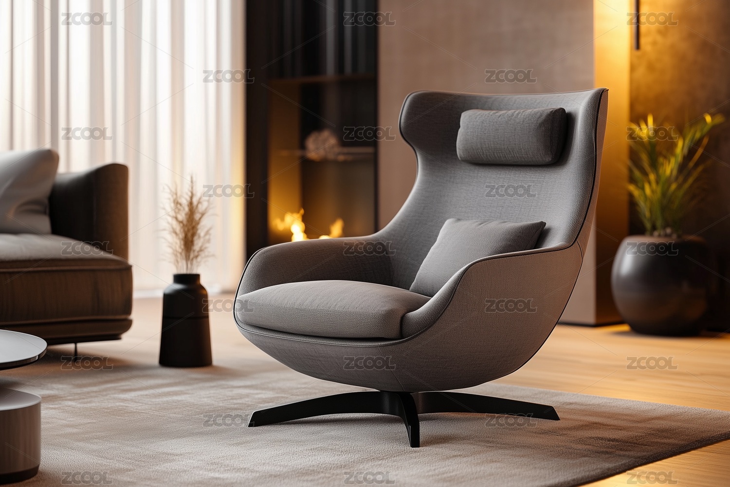 现代简约客厅的蛋形椅与圆形茶几