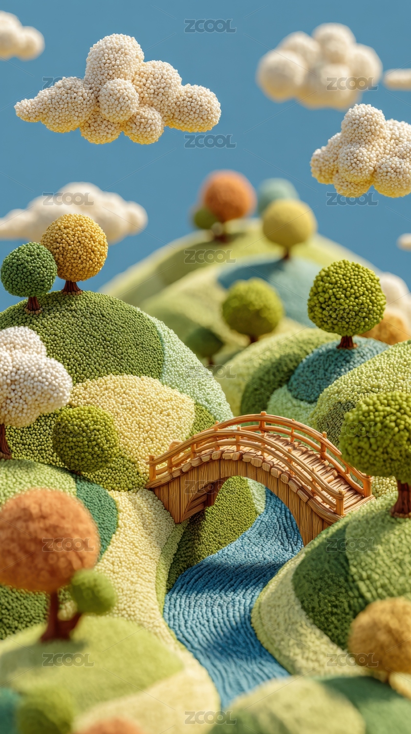 毛线毛绒质感3D冬日森林电商场景展台背景