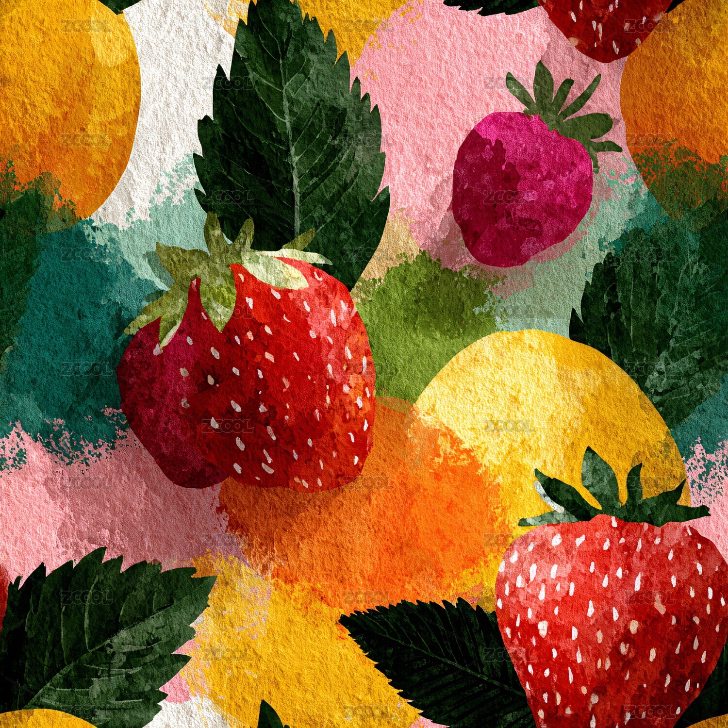 水果,插画,草莓,苹果,樱桃,柚子,叶子,卡通,粉色,背景