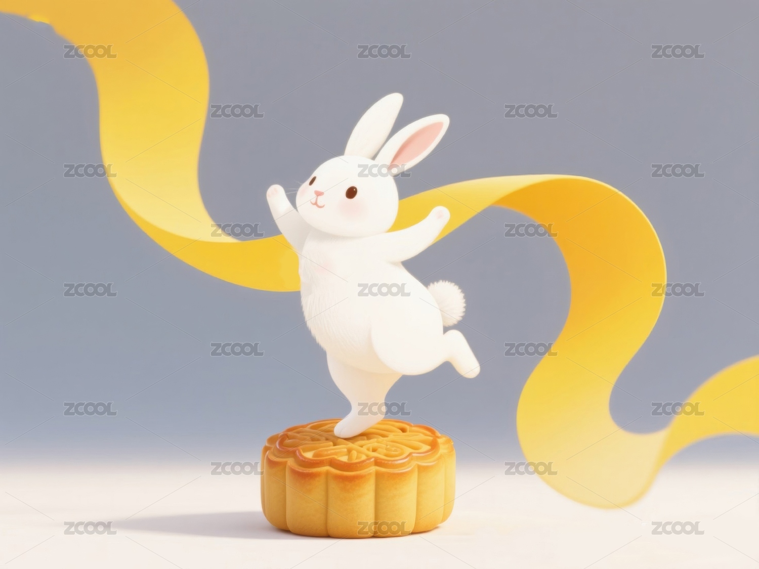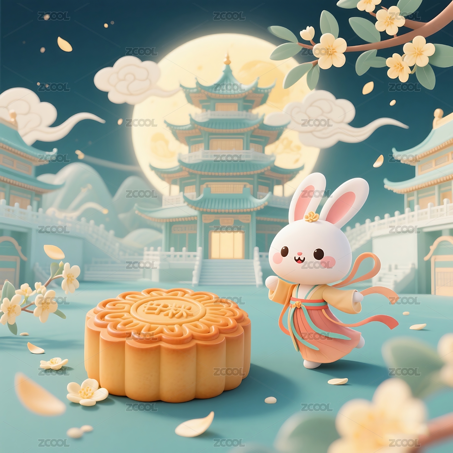 3D,三维,中秋节,月饼,满月,玉兔,兔子,跳舞,汉服