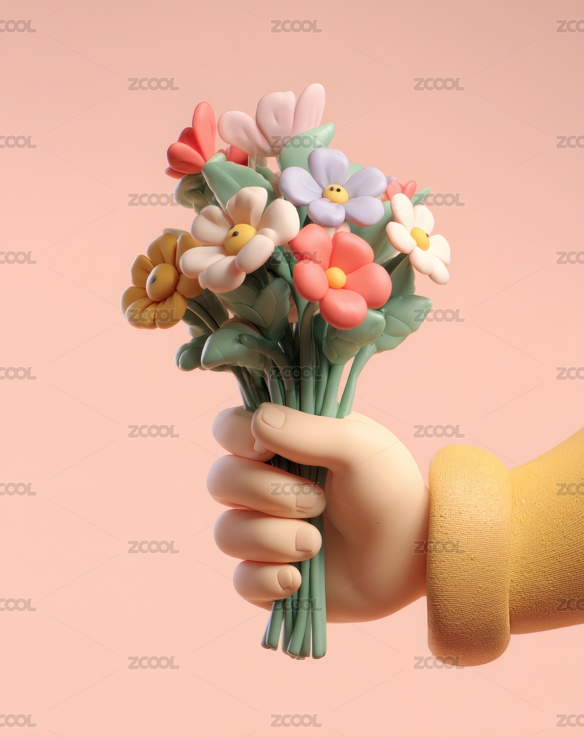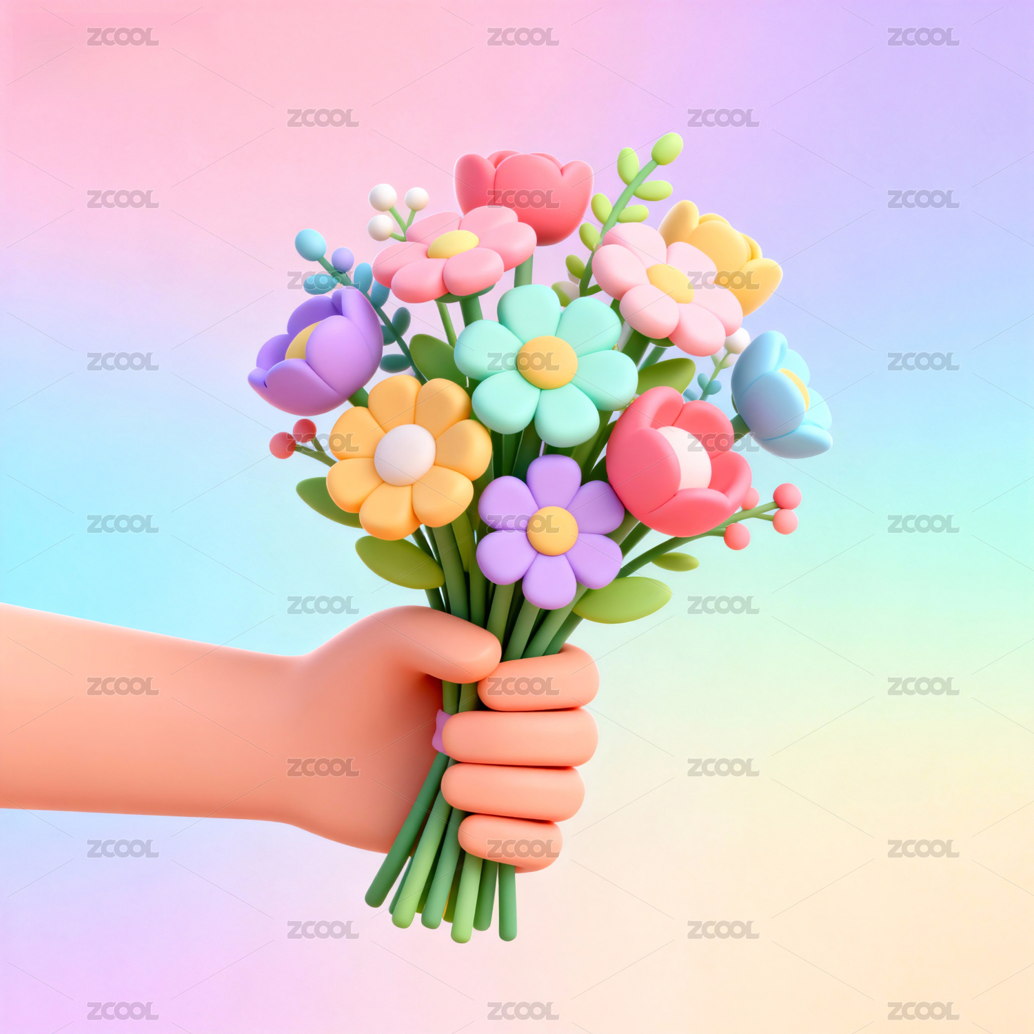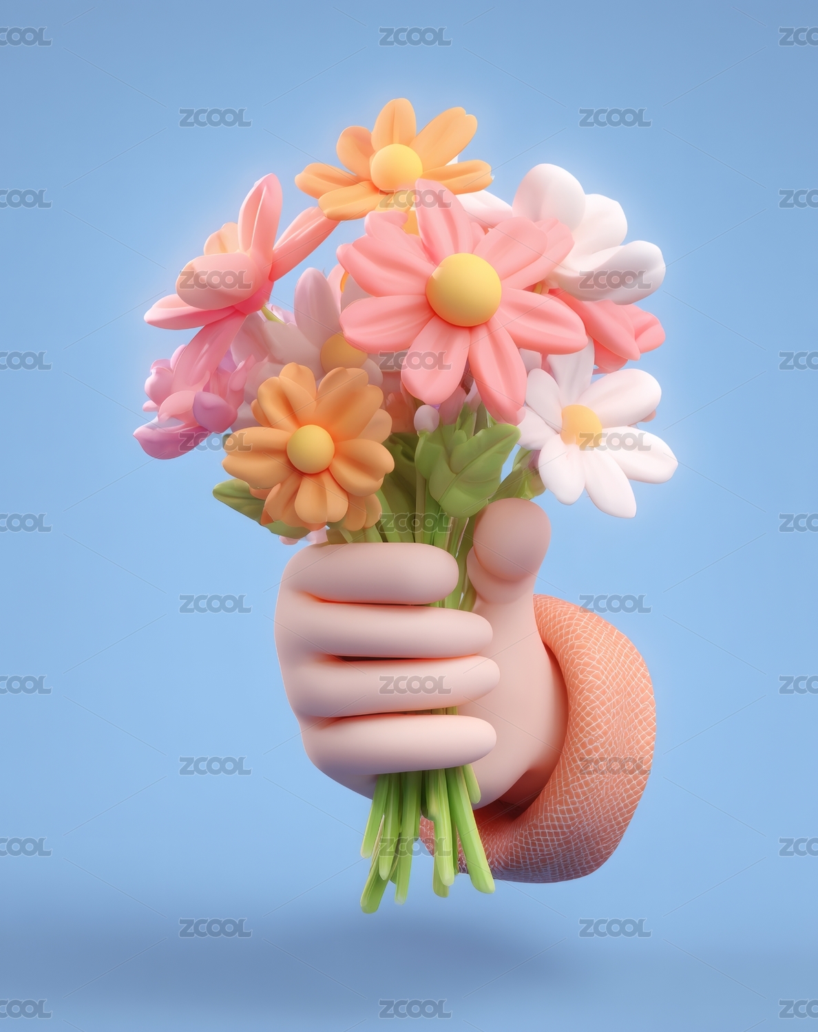 3d卡通手捧鲜花
