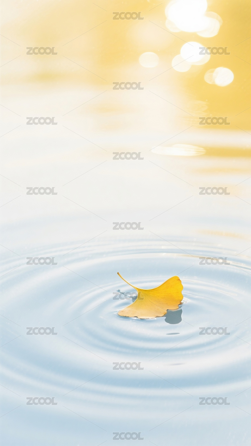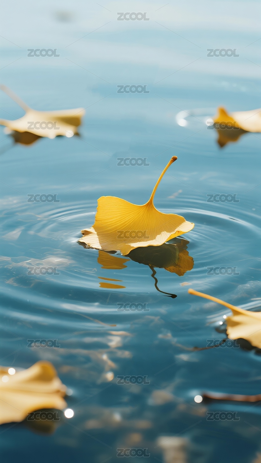 水面银杏叶秋景