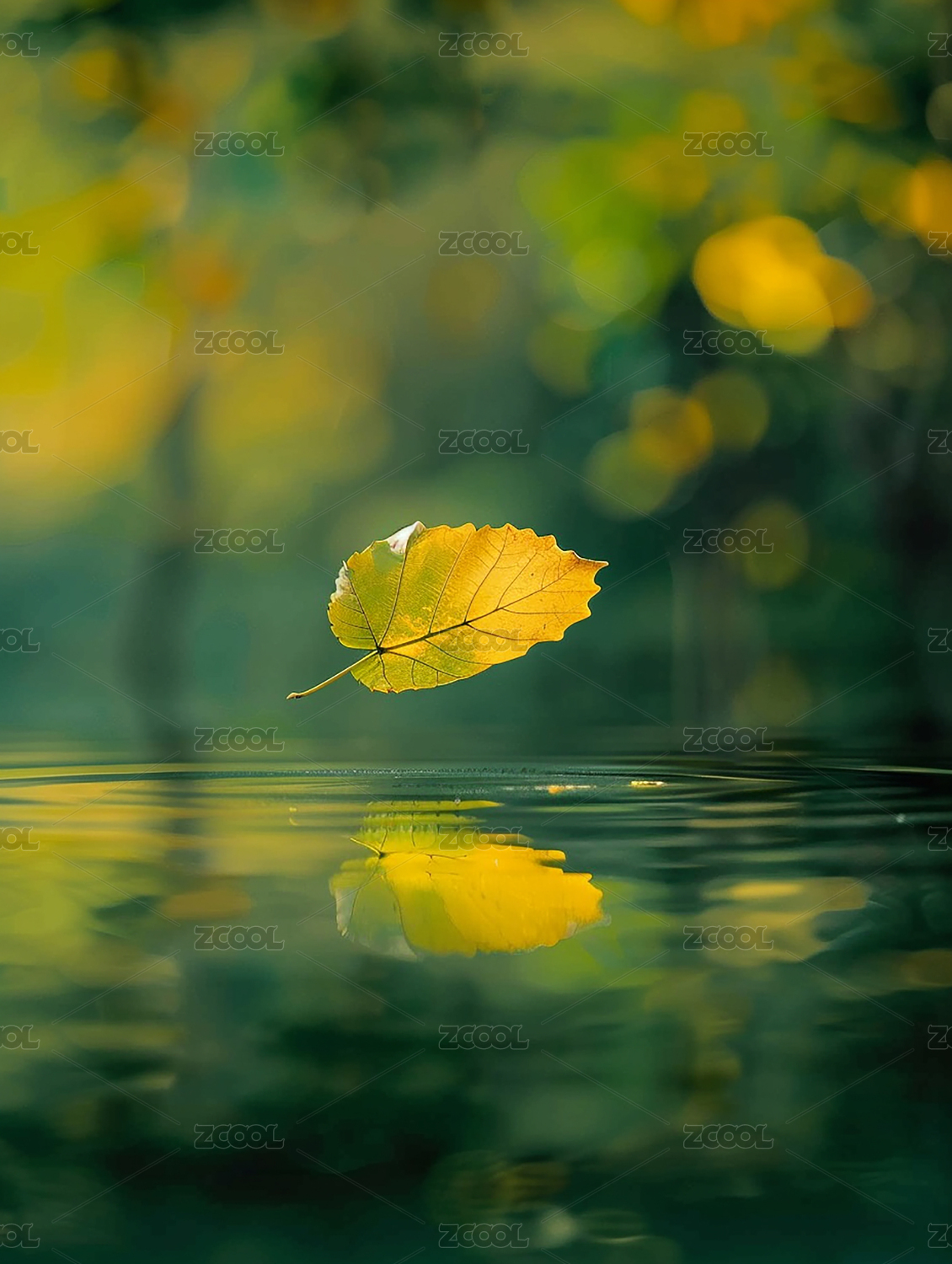 水面漂浮的黄叶