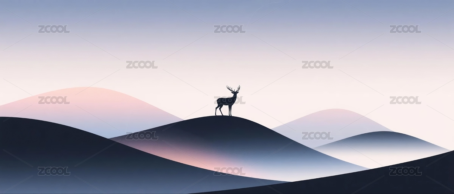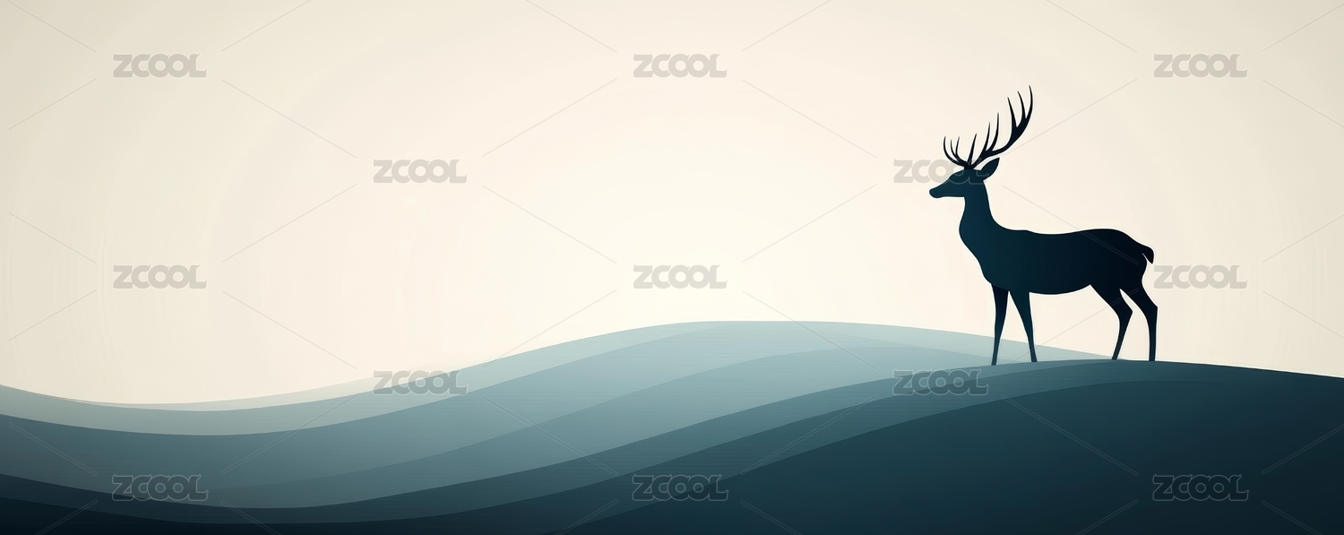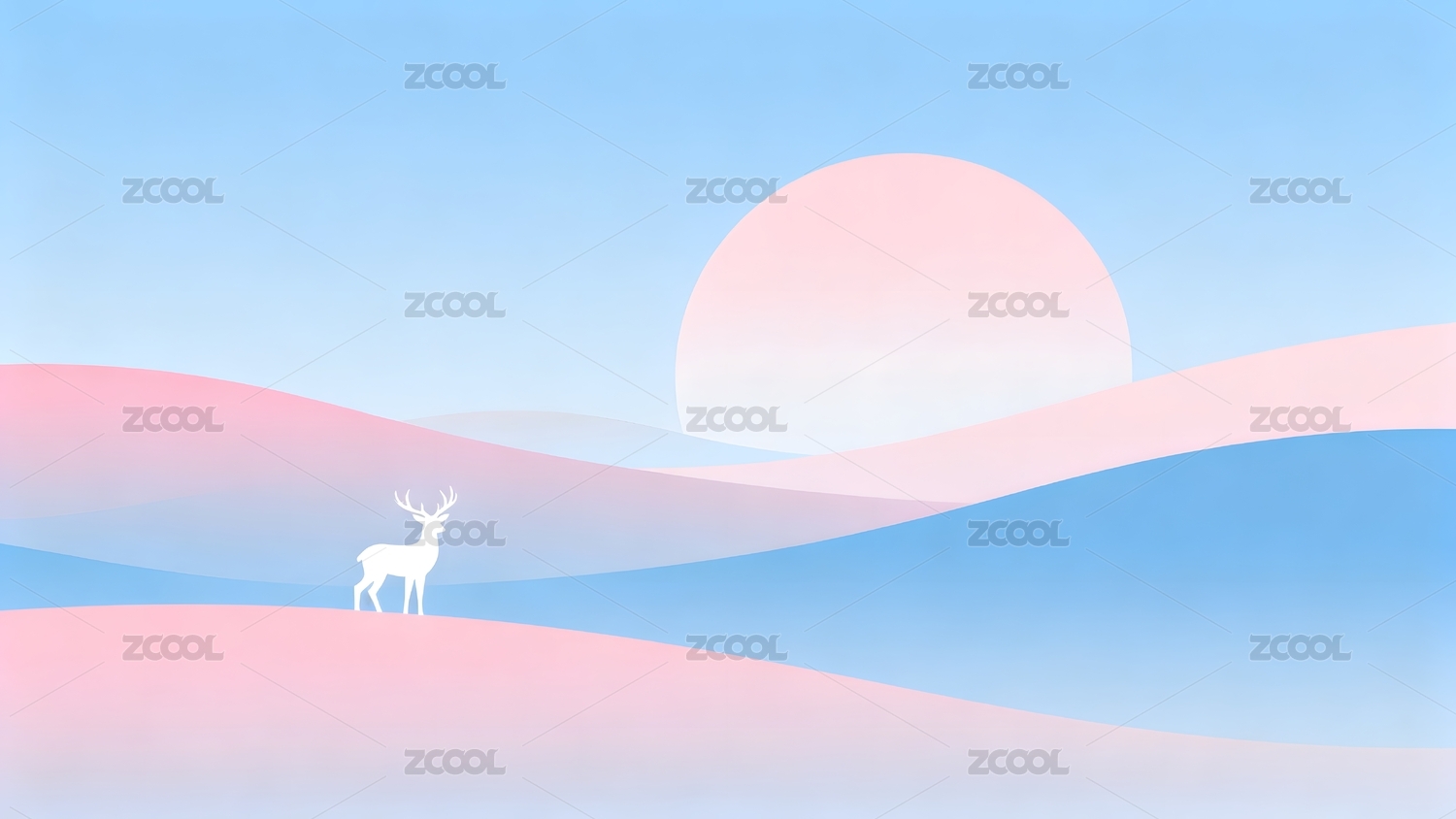 3d唯美风格冬季雪景一只鹿站在雪地里