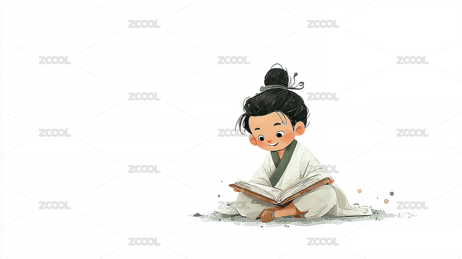 中国风读书的女孩卡通插画