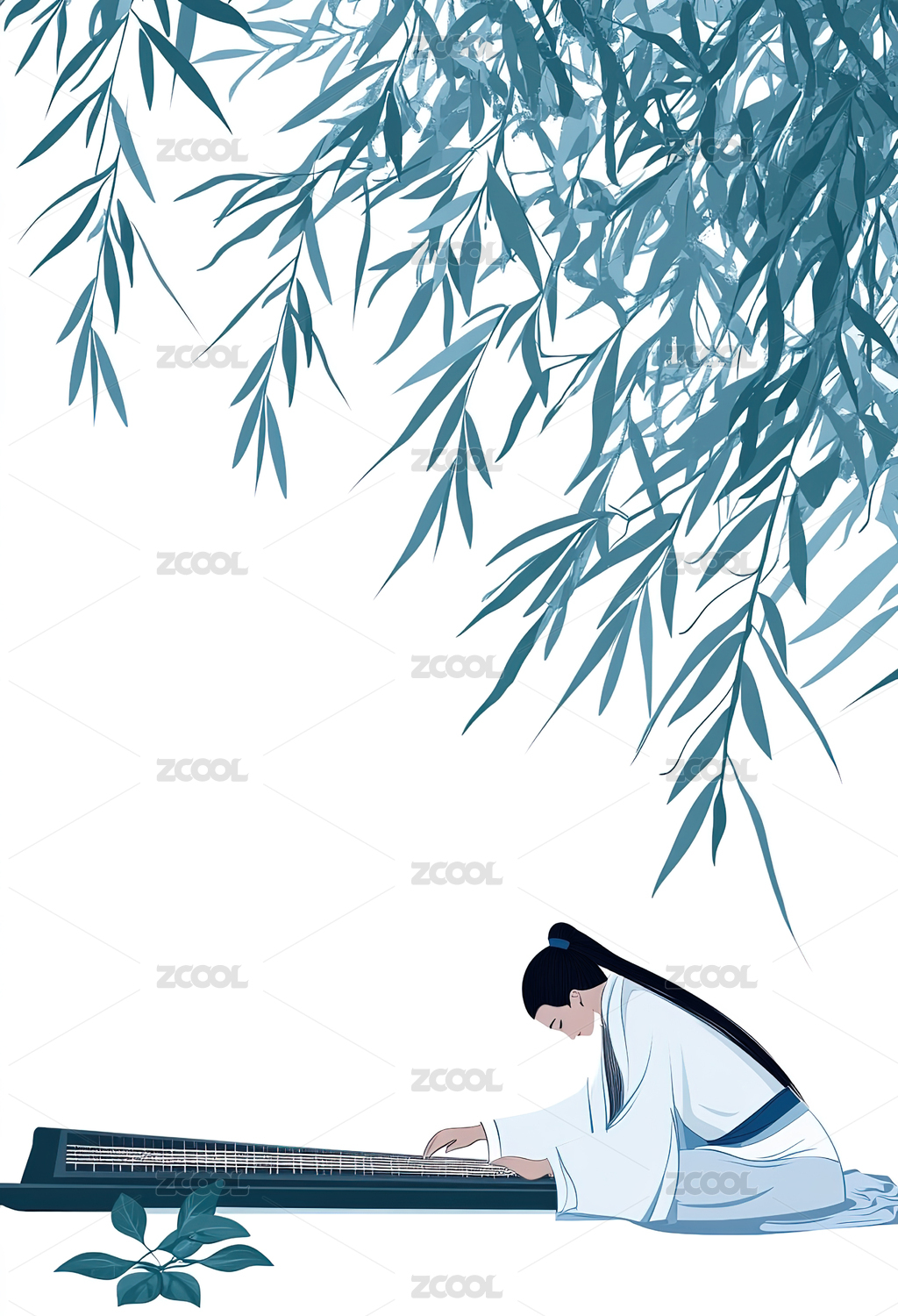 中国风古风弹琴的卡通插画