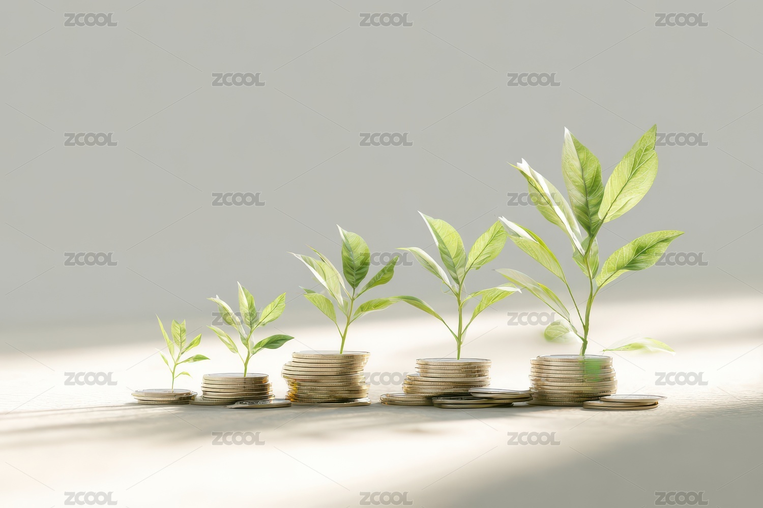 绿叶,阳光,硬币,植物,生长,财富,叠放,象征