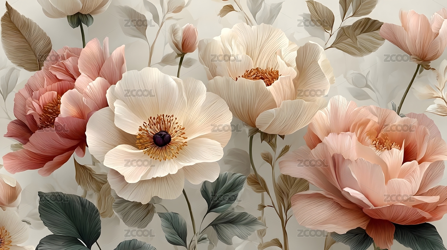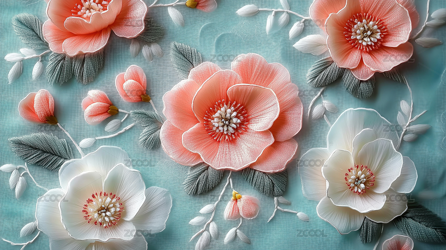 花卉,叶子,插画,立体,装饰,唯美,浪漫,自然,植物,花朵