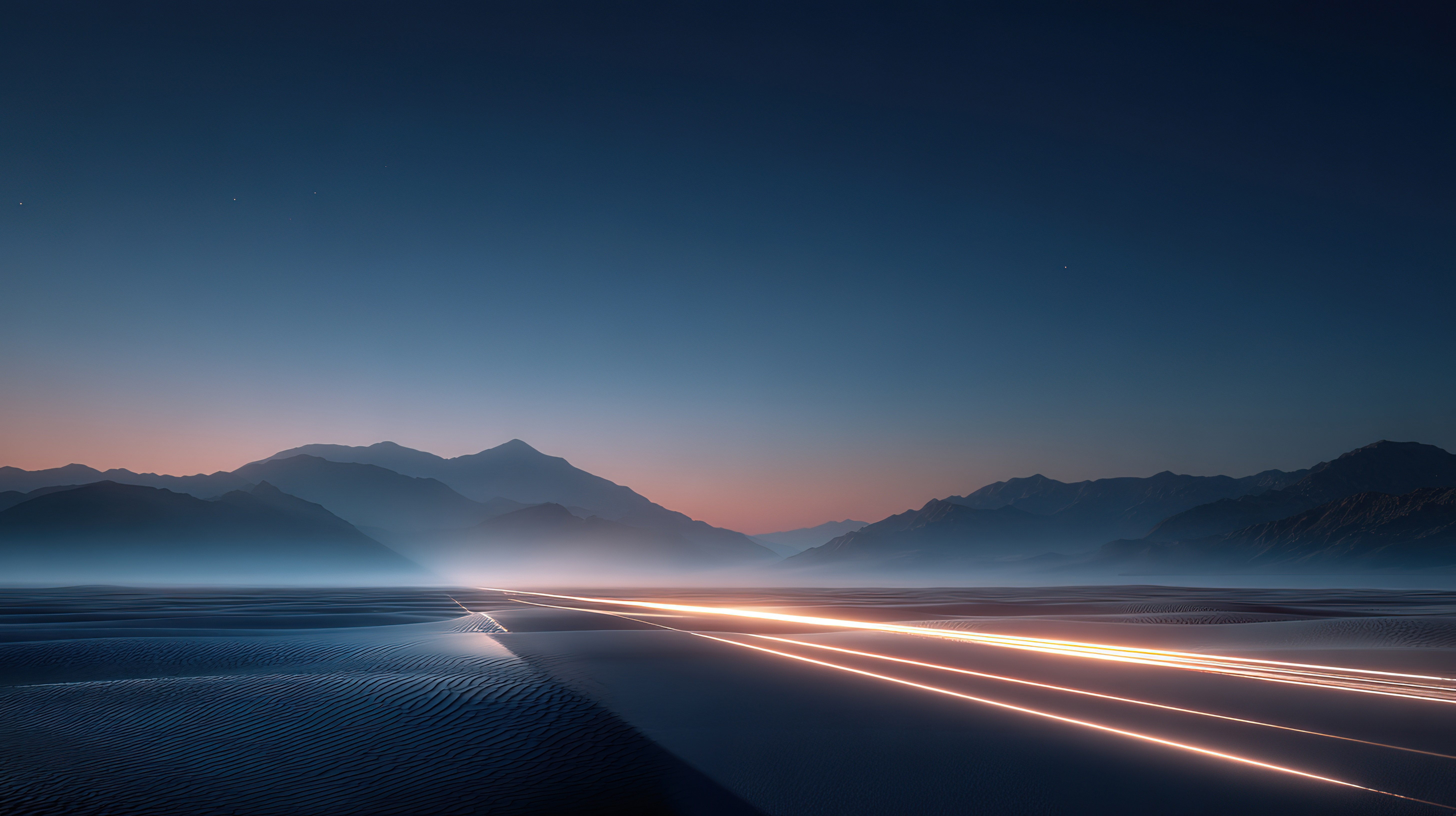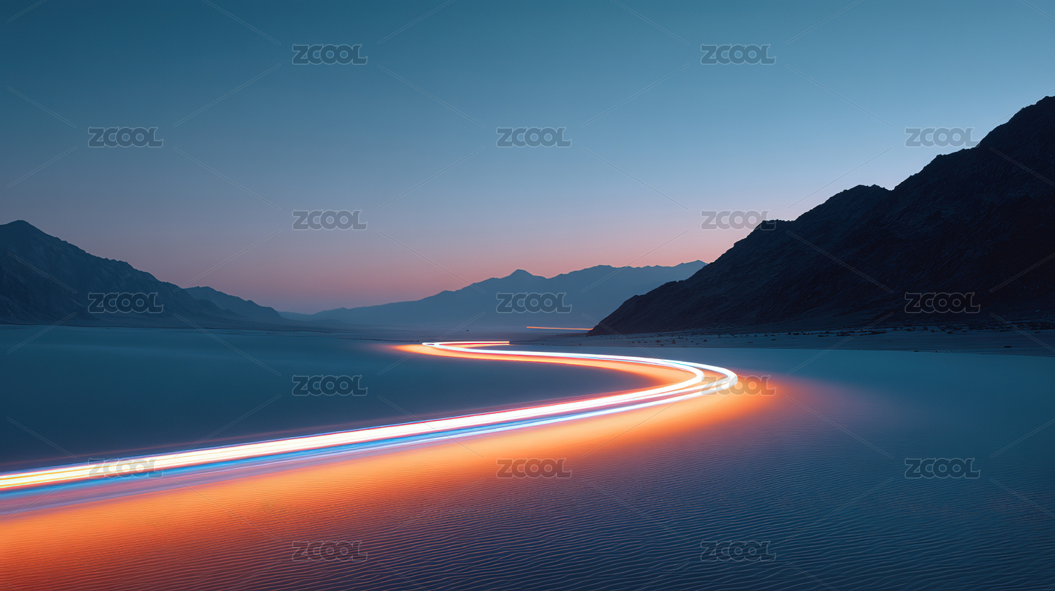 海边,天空,宁静,远方,夜晚,公路,车灯,光影,湖水,山脉