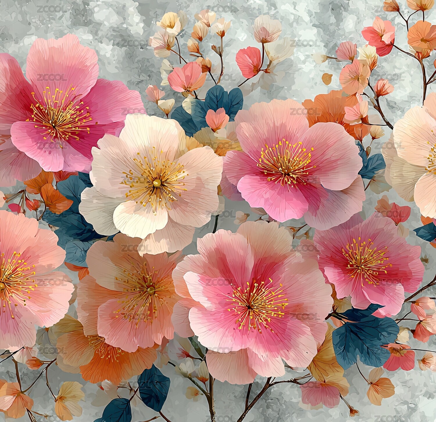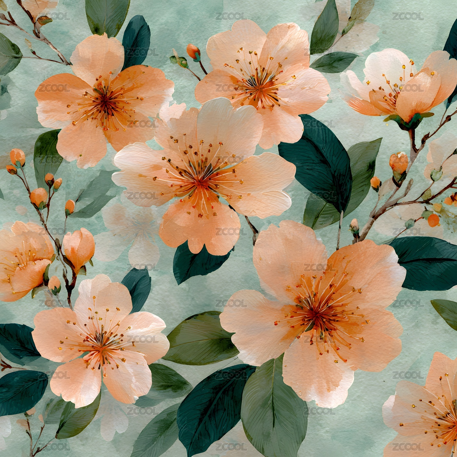 花朵,绿叶,插画,花卉,图案,唯美,清新,自然,植物,彩色