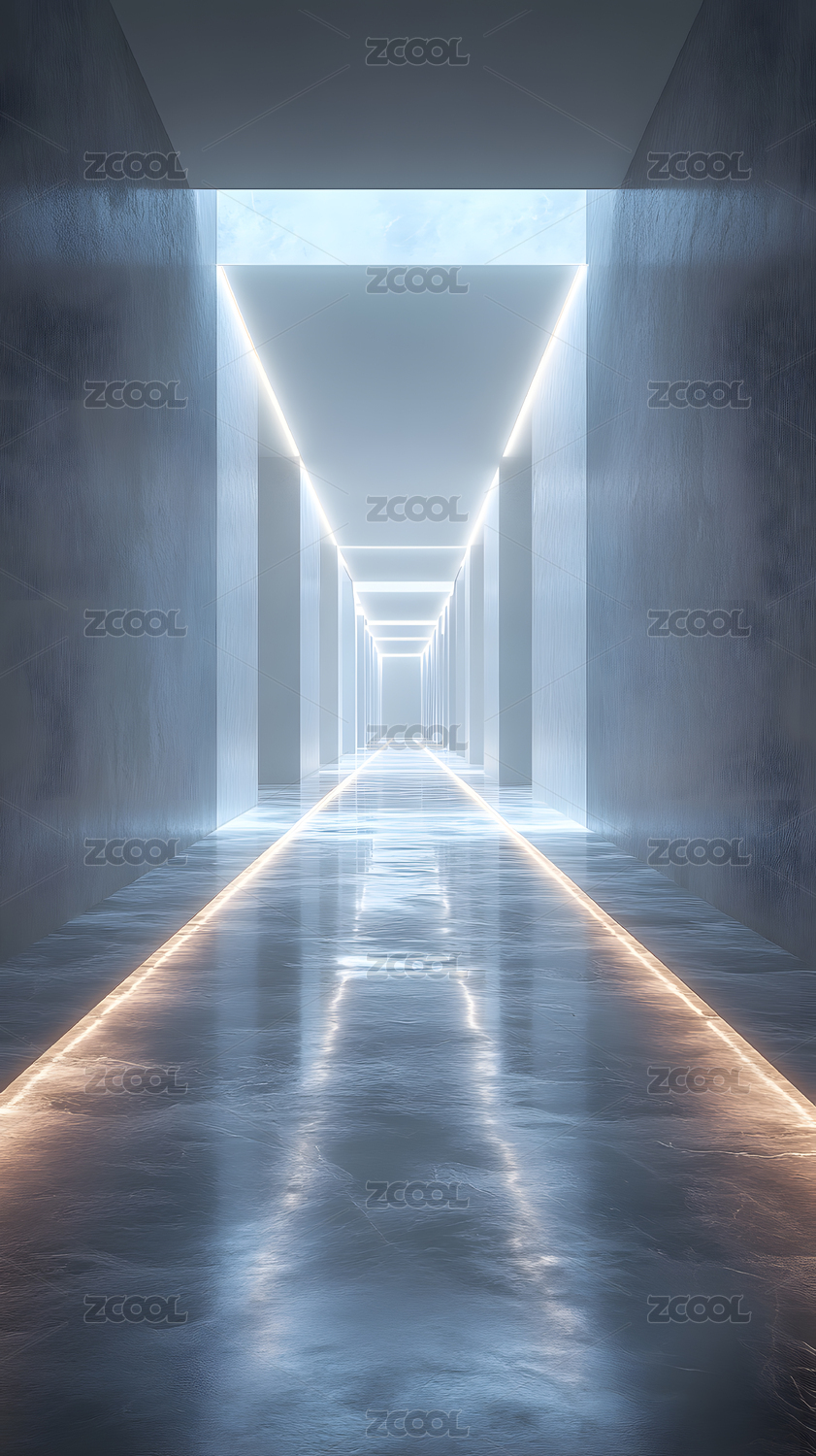 廊道,白色,延伸,空间,几何,建筑,简约,现代,明亮,地面