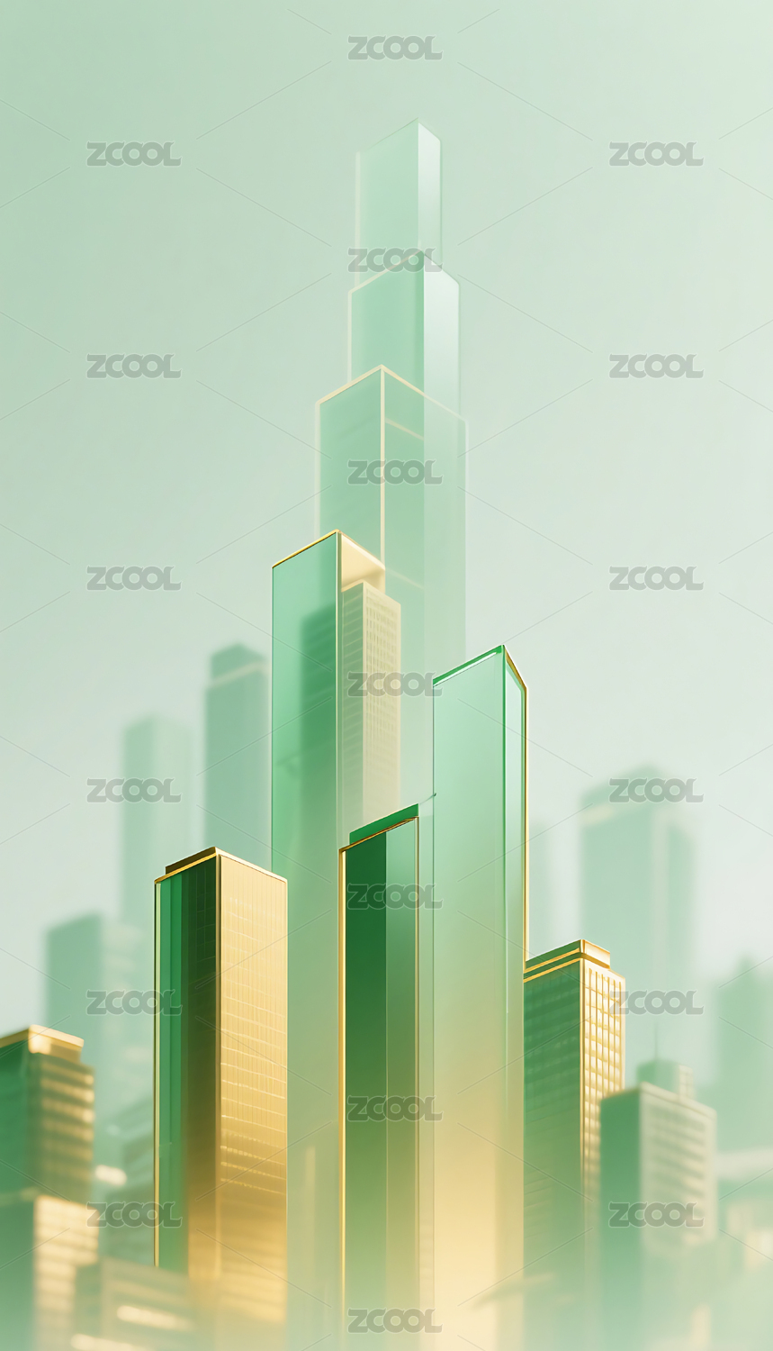 绿金色几何玻璃城市建筑背景
