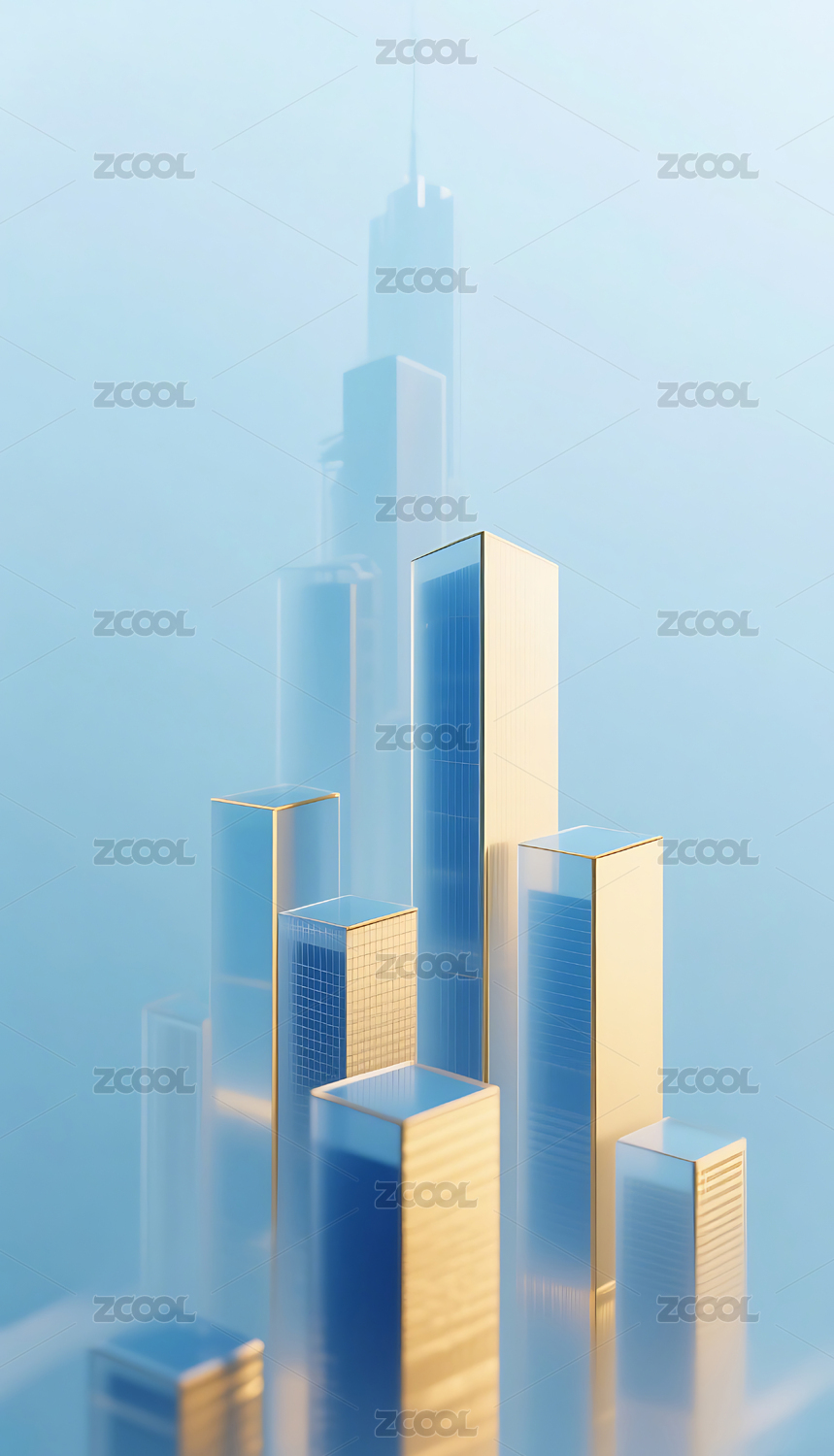 浅蓝色几何玻璃城市建筑背景