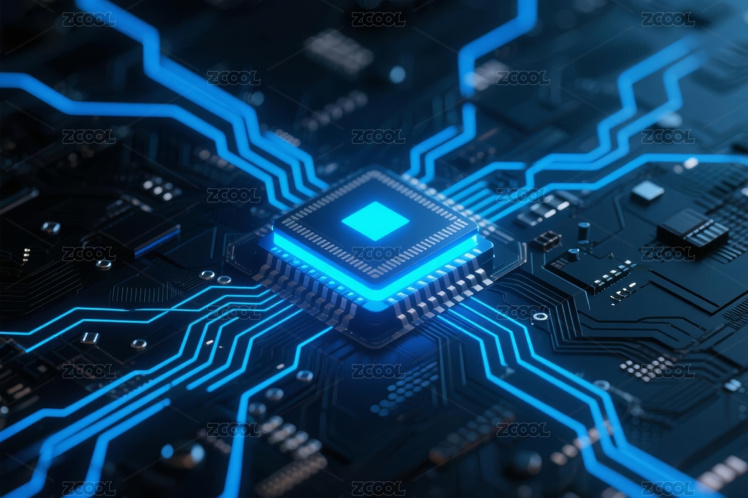 半导体芯片,电路板,插画,水彩风格,细节,色彩,电子元件,科技,画面,视觉