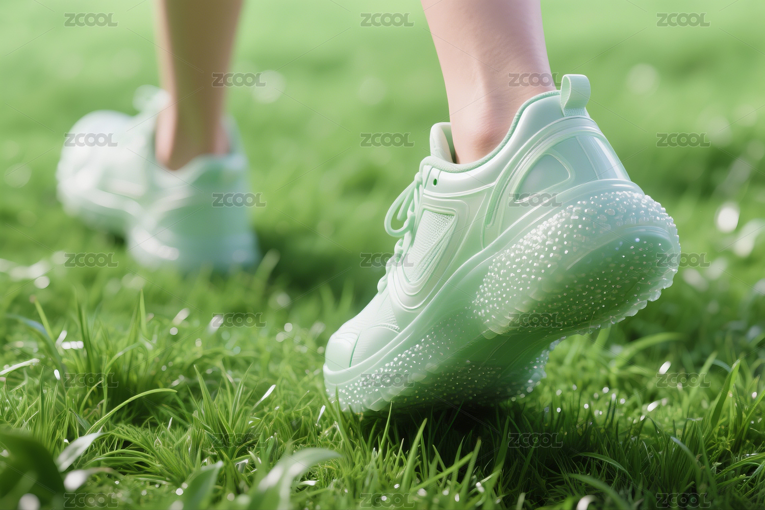 逆光跑步的步伐清晰的鞋底健美的亚洲女人腿