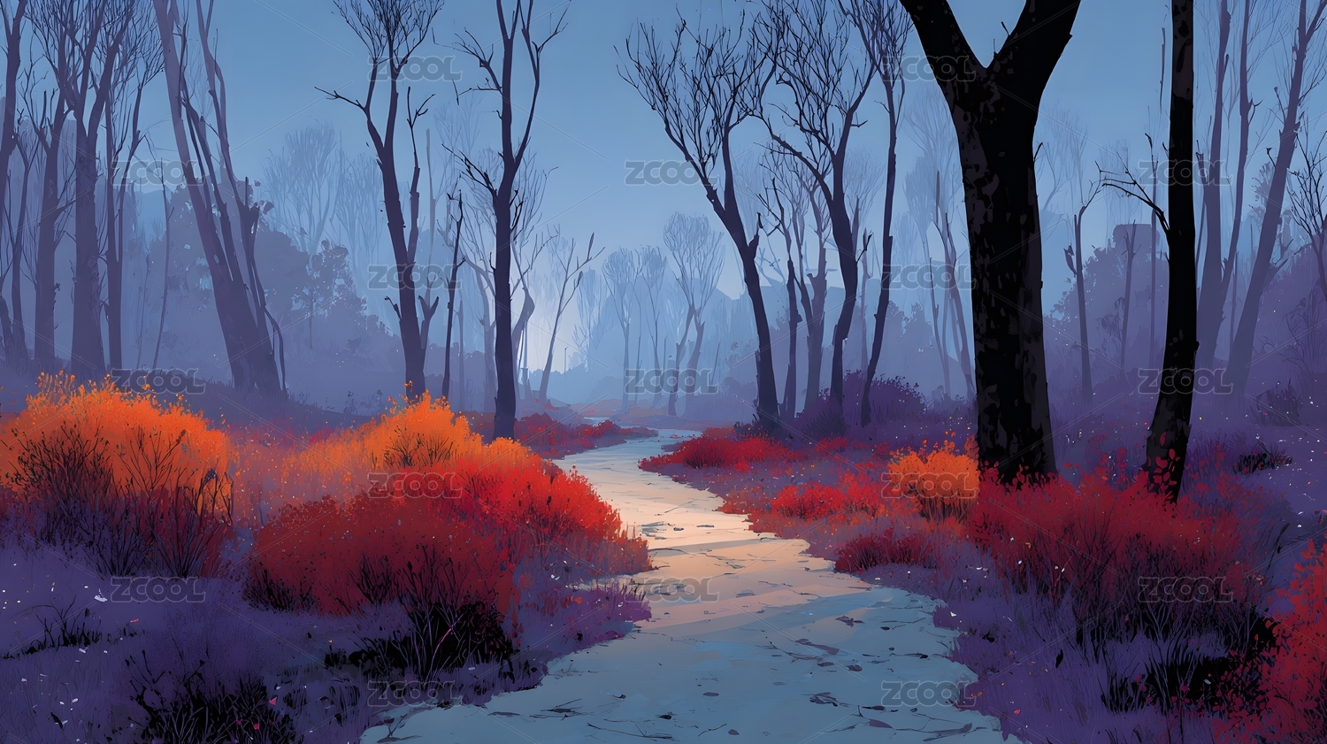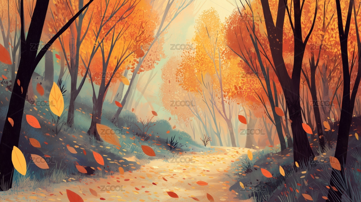 树木,秋天,自然,森林,景色,色彩,树干,地面,灌木,宁静