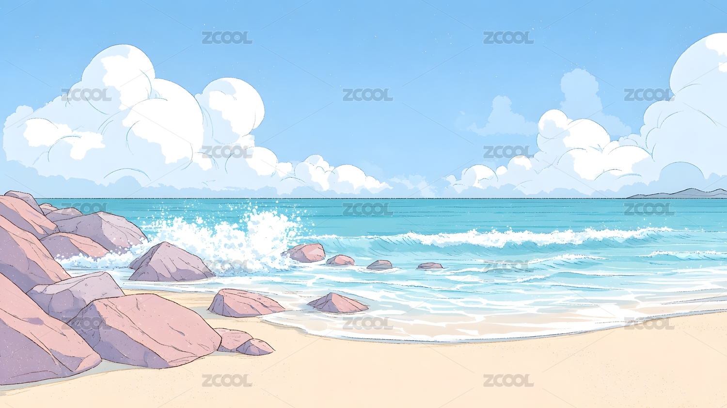 海边,蓝天,白云,大海,沙滩,阳光,海风,浪花,海水,远山