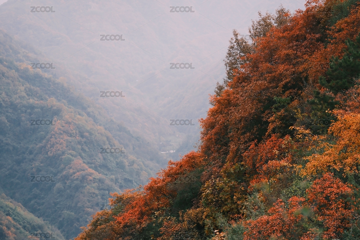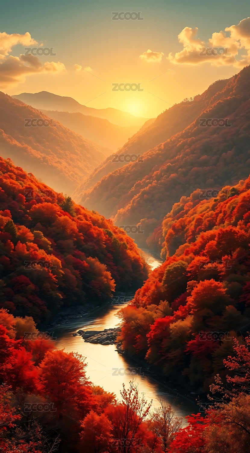 秋日山谷红叶满山