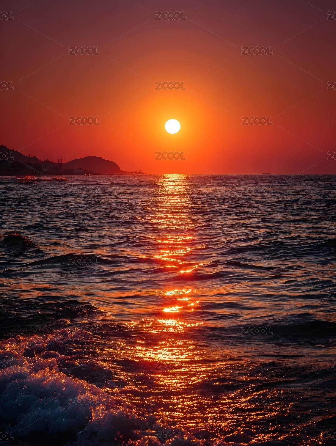 自然,景观,环境,户外,宁静,夕阳,海面,山峦,剪影,橙色