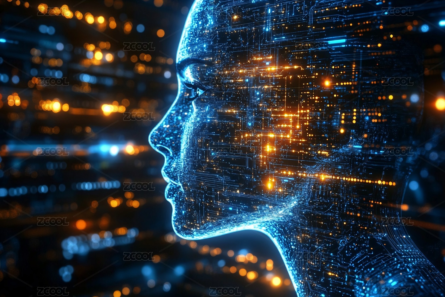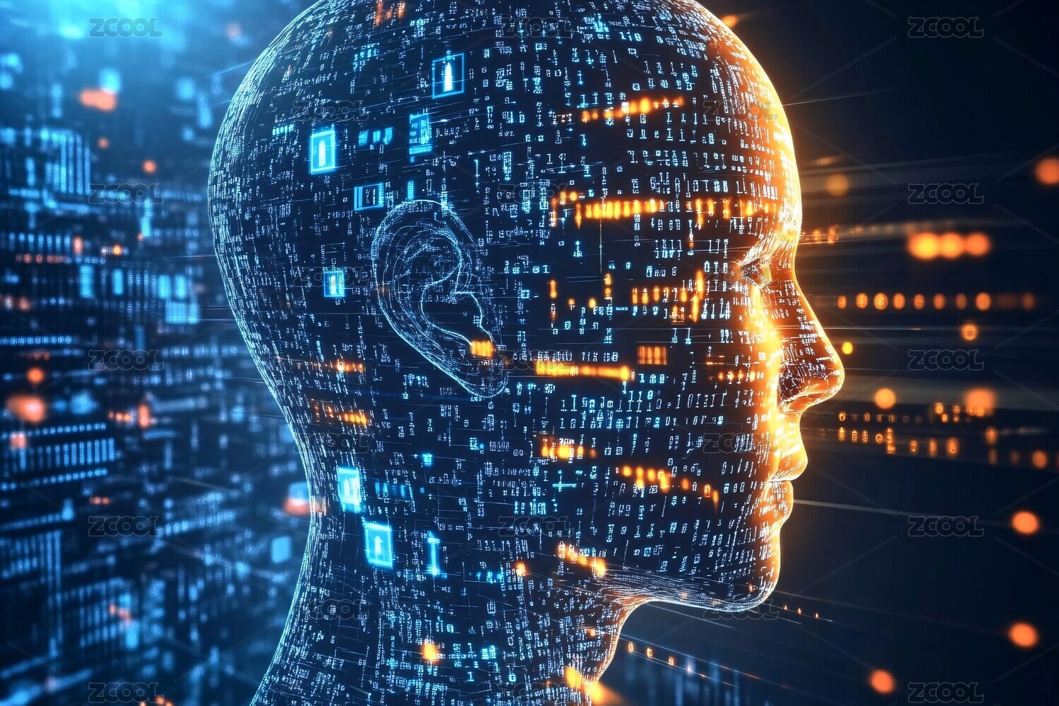 人工智能,头像,科技,数码,插画,未来感,虚拟,数据,代码,蓝光